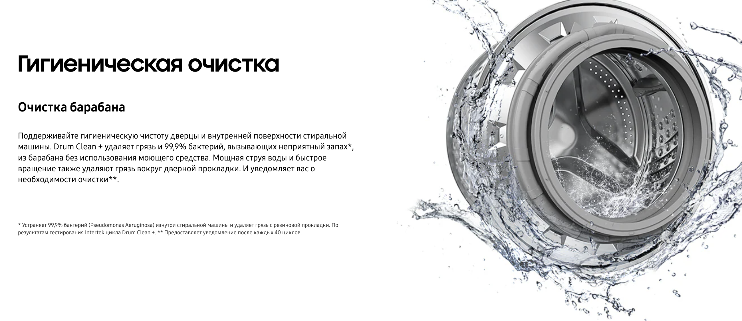 БрендSamsung Тип загрузкиГоризонтальная Глубина установки45 см Максимальная загрузка стиральной машинки7 кг Материал барабанаНержавеющая сталь Максимальная скорость отжима1200 об/мин Наличие функции обработки паромЕсть Класс энергопотребленияА+++ Класс стиркиA Класс отжимаB