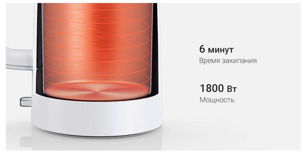 Чайник обладает новой улучшенной нагревательной пластиной из толстого листа алюминия безопасного для здоровья. Алюминий нагревается равномерно по всей площади и быстро отдает тепло, не выделяя в воду опасные вещества. Нагревательный элемент чайника имеет мощность в 1800 Вт, что позволяет вскипятить воду за 7 минут! Также чайник от Xiaomi получил температурный контроллер от STRIX – ведущего мирового производителя из Великобритании. Контроллер с высокой точностью следит за температурой воды, гарантируя безопасность во время работы чайника