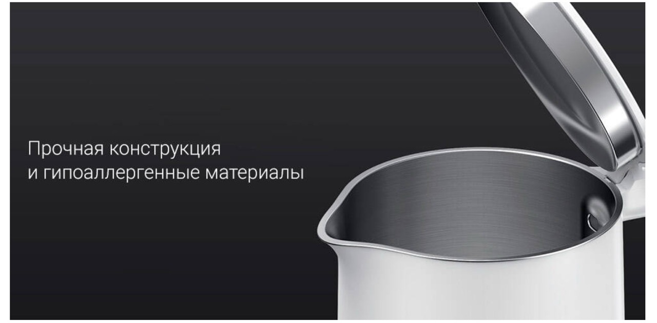Чайник Xiaomi выполнен из своременных и качественных материалов! Внутренняя камера, носик и крышка выполнены из пищевой нержавеющей стали сорта AISI304. Данная сталь обладает высокой устойчивостью к ржавчине и высокой температуре!