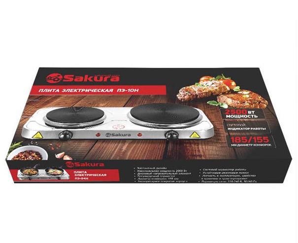 Мощность 1500+1000Вт, диаметр конфорок 185/155 мм, дисковый нагревательный элемент из высококачественного чугуна, плавная регулировка температуры, защита от перегрева, световой индикатор работы, прорезиненные ножки. Прочный корпус из нержавеющей стали, с которого легко удаляются загрязнения. Длина сетевого шнура – 1м. Срок службы прибора – 5 лет. Цвет – нерж.сталь/черный