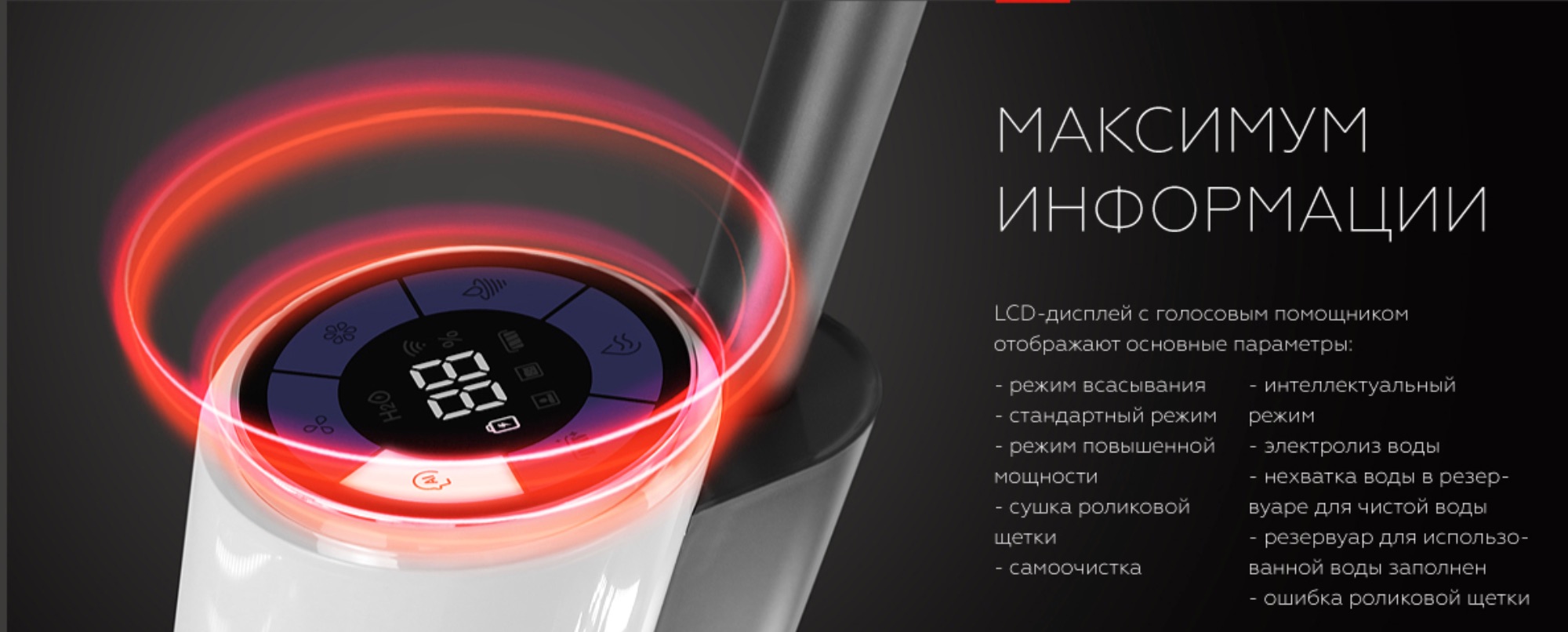 • Интеллектуальный LED-дисплей с голосовым помощником показывает нужную информацию во время уборки.