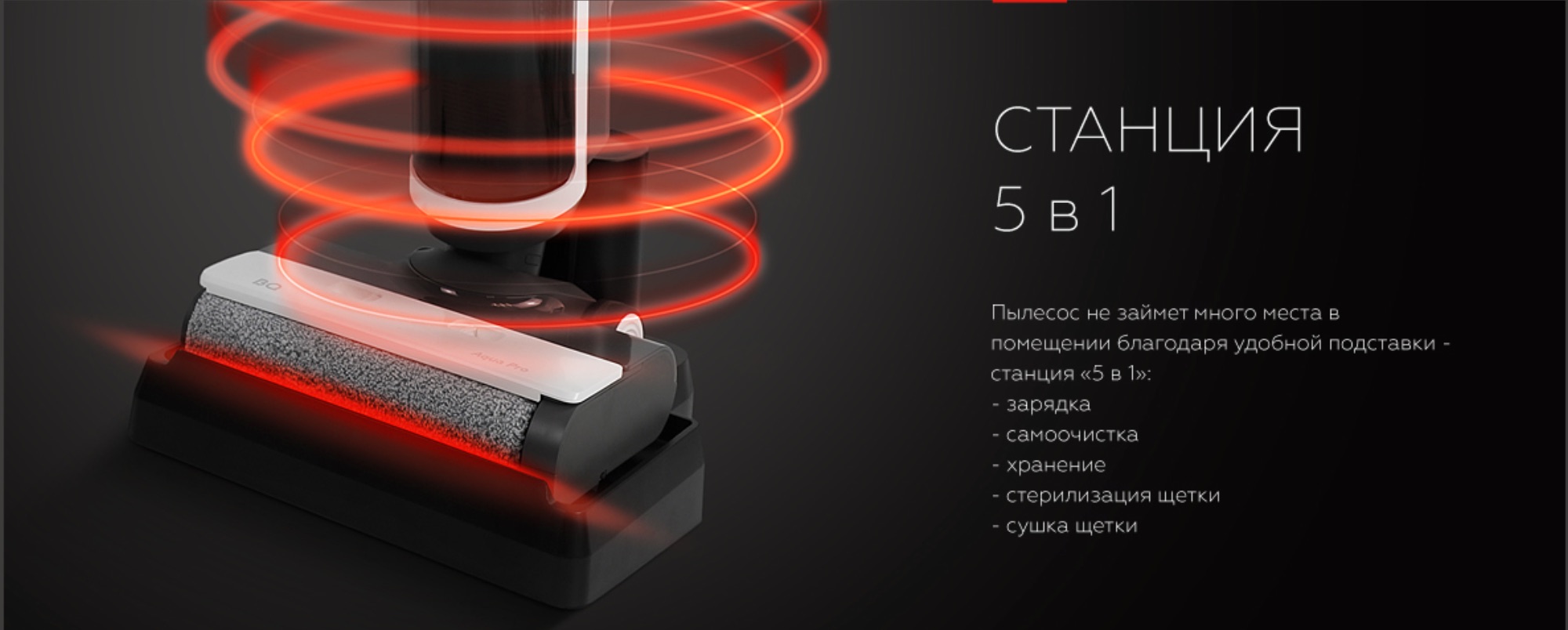• LED-подсветка щётки — помогает видеть грязь даже в тёмных местах.
