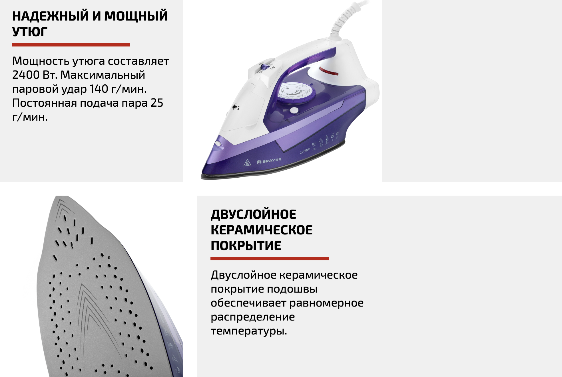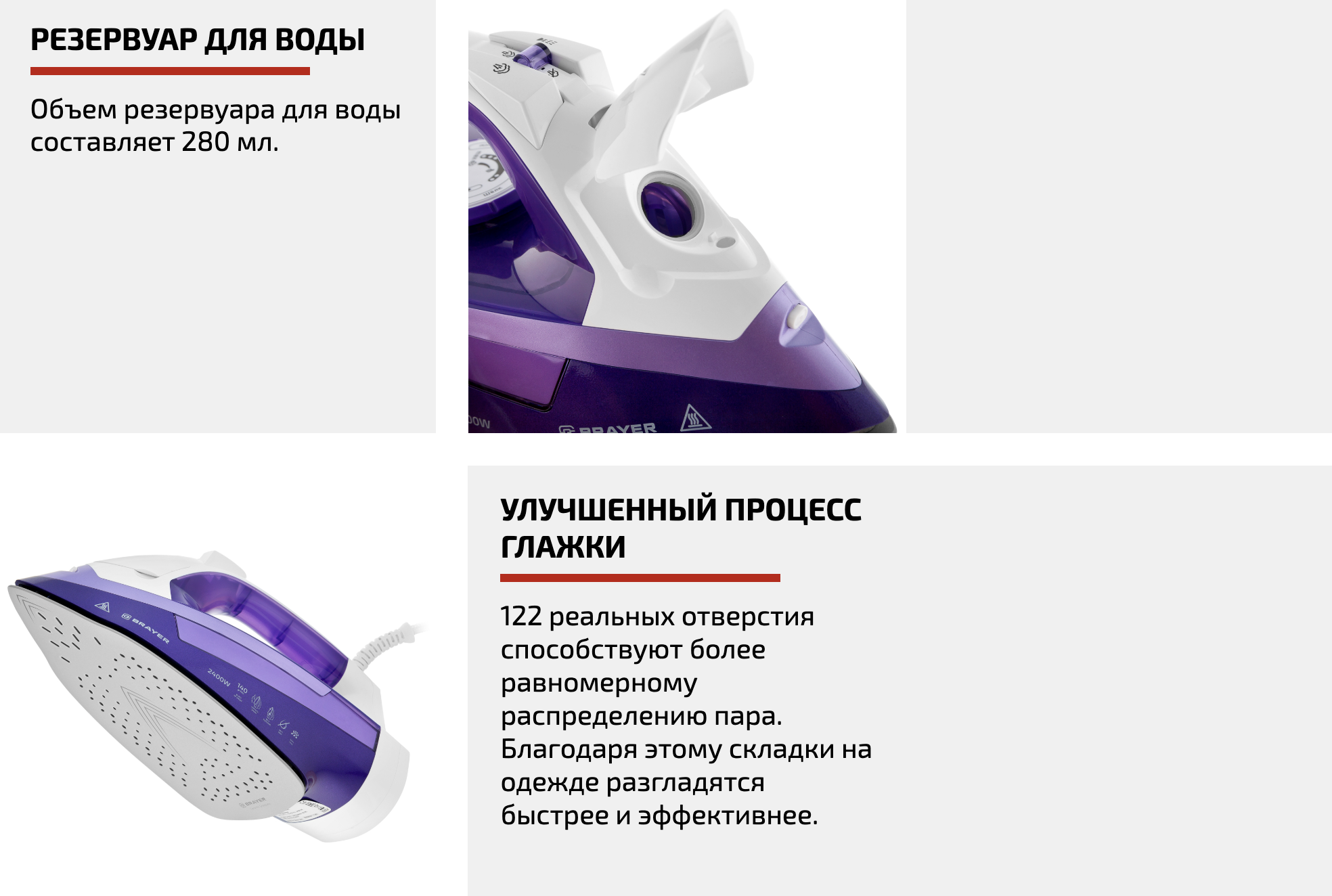 Утюг BRAYER BR4004 2400 Вт белый/фиолетовый