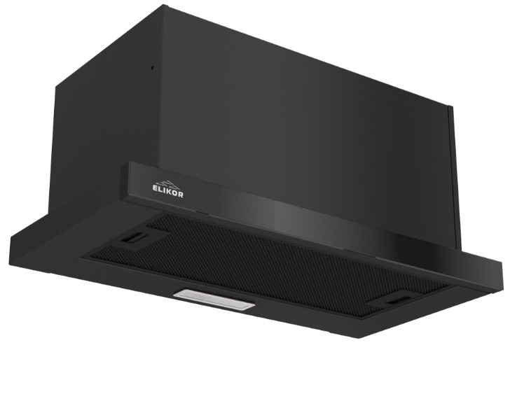 Корпус вытяжки выполнен из долговечной нержавеющей стали черного цвета. Размещается внутри кухонного гарнитура. Благодаря этому устройство не будет бросаться в глаза, а при готовке можно выдвинуть над плитой воздухозаборную решетку. На корпусе вытяжки располагаются две ярких светодиодных лампочки мощностью по 5 Вт, которые будут подсвечивать столешницу. Рекомендуемая площадь помещения 40м2.