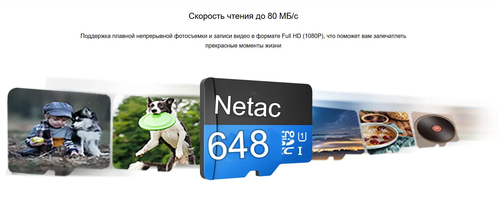 Карта памяти Netac microSDHC 32 Гб защищена от воды. Максимальная скорость чтения составляет 80 Мб/с. В комплекте есть адаптер.