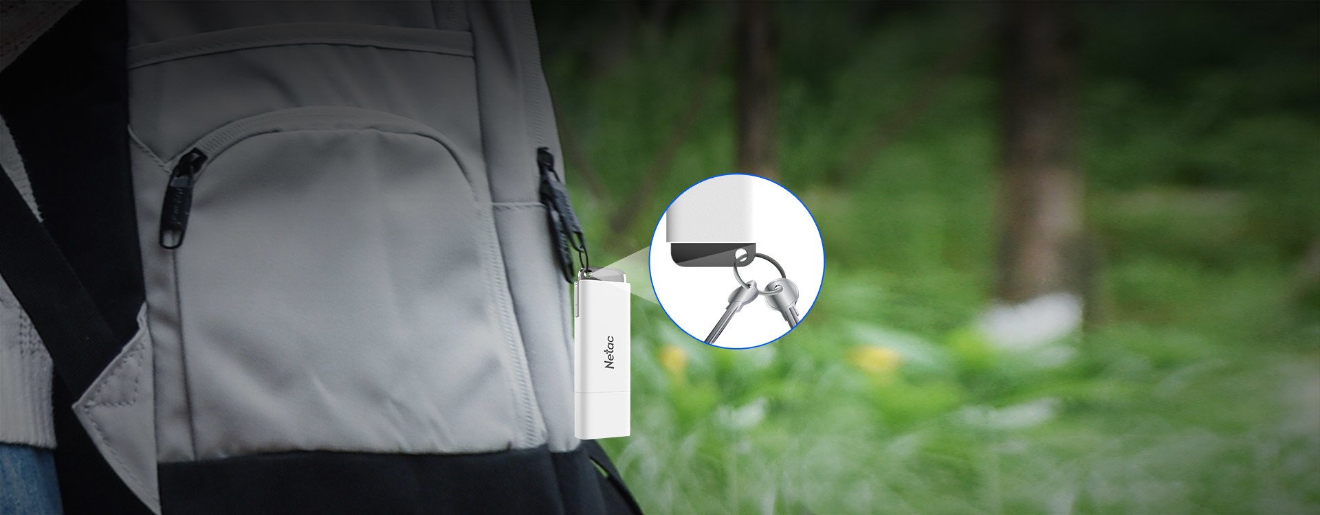 Закрепите флеш-накопитель на ключах или рюкзаке через отверстие для шнурка, чтобы сделать его удобным для переноски и предотвратить потерю.