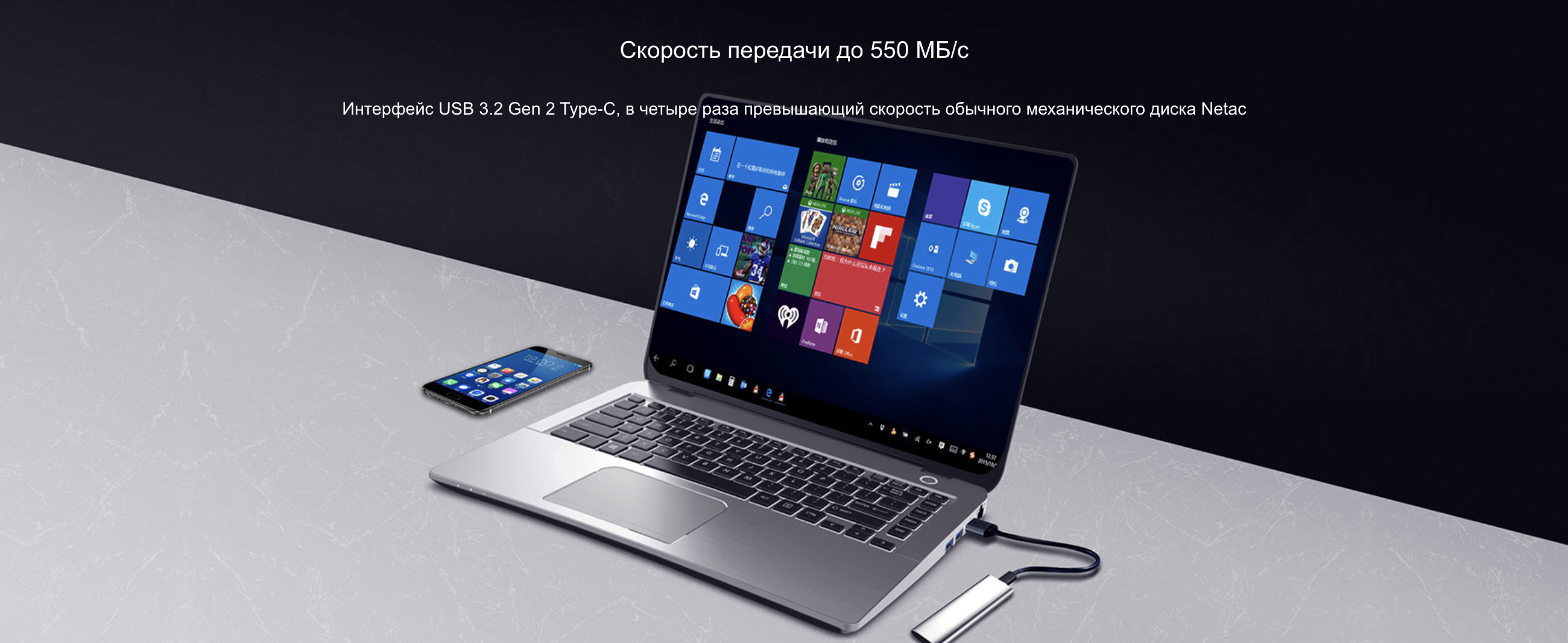 Характеристики Внешний жесткий диск SSD NETAC Z Slim 2Tb USB-C черный (NT01ZSLIM-002T-32BK)