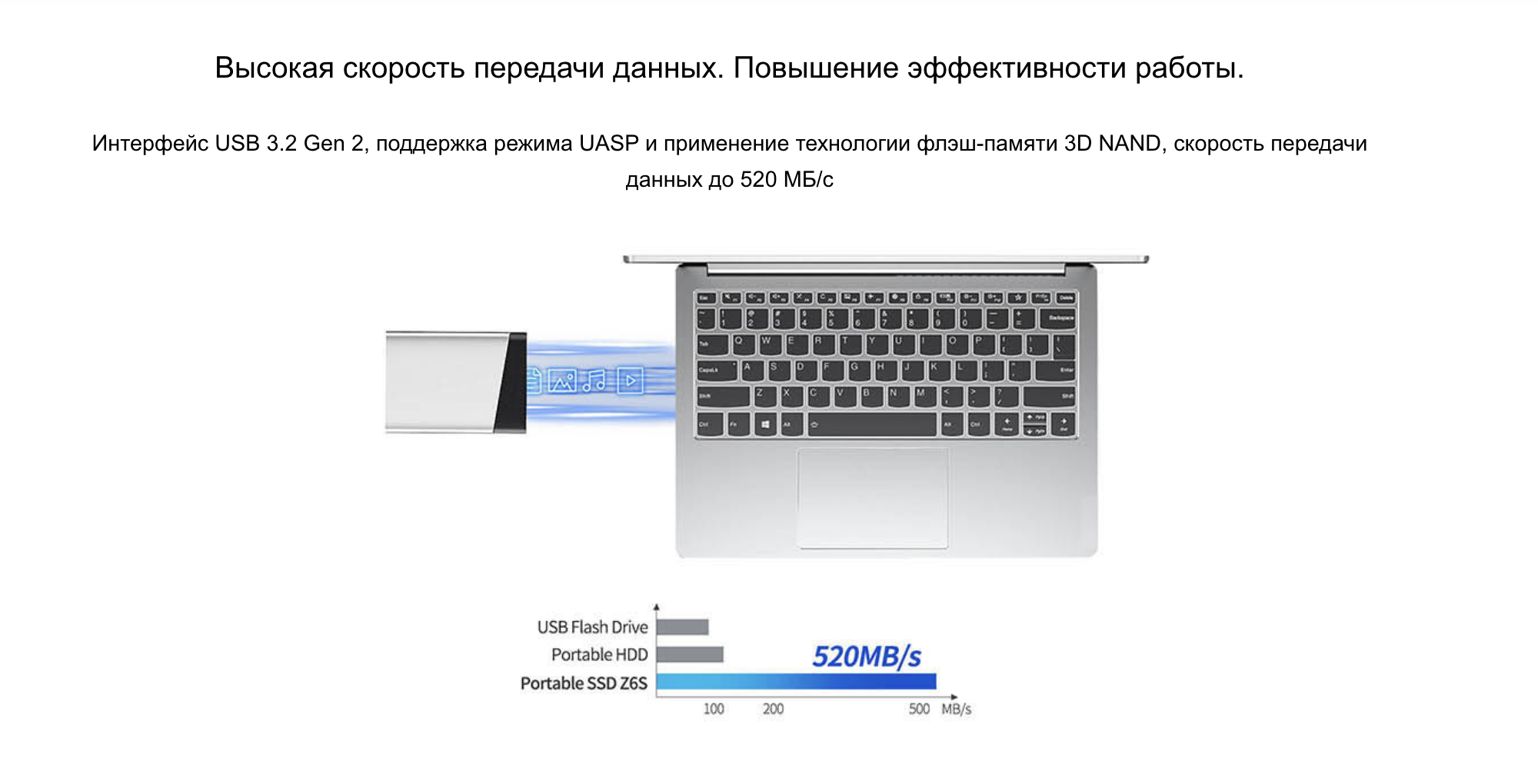 Характеристики Внешний жесткий диск SSD Netac Z6S 480Gb USB 3.2 (NT01Z6S-480G-32SL)
