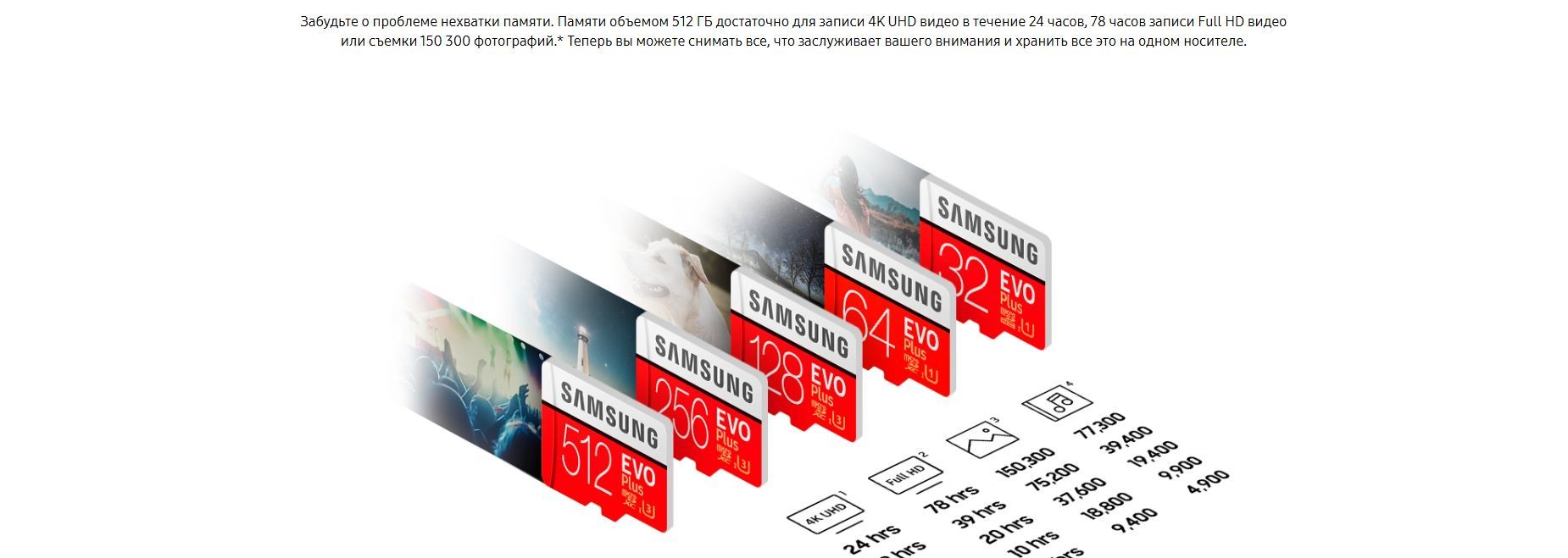 Благодаря высоким рабочим характеристиками и надежности, SD карты Samsung серии EVO позволят сохранить на долгую память самые дорогие моменты вашей жизни.