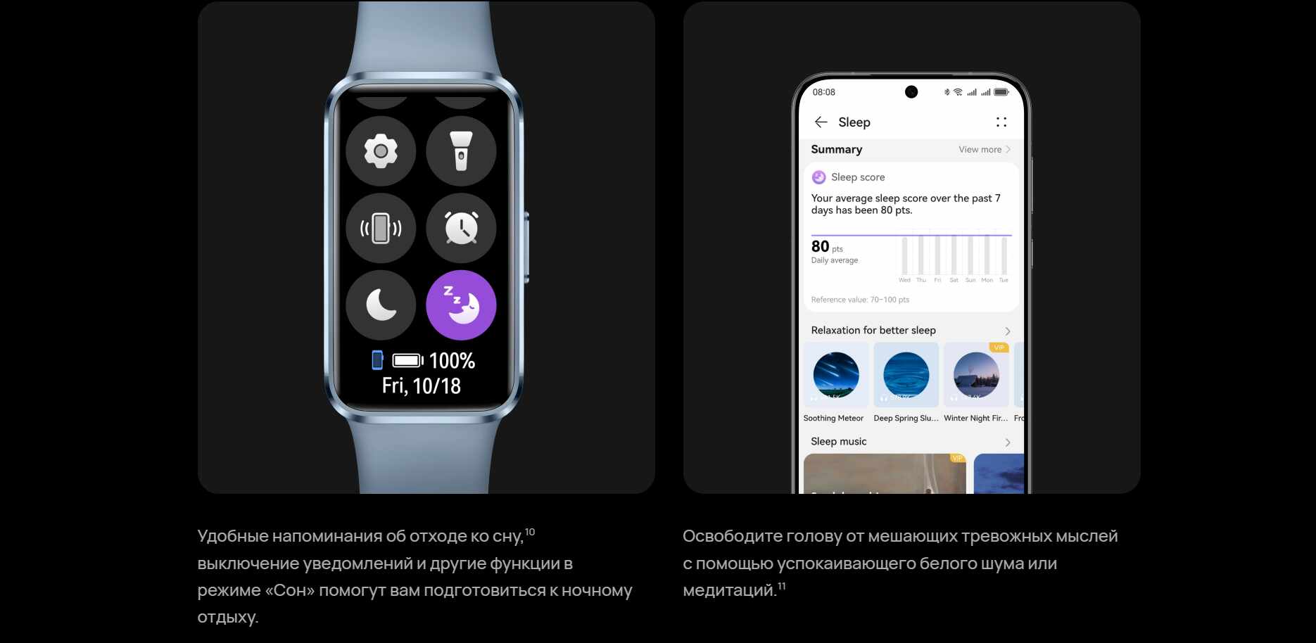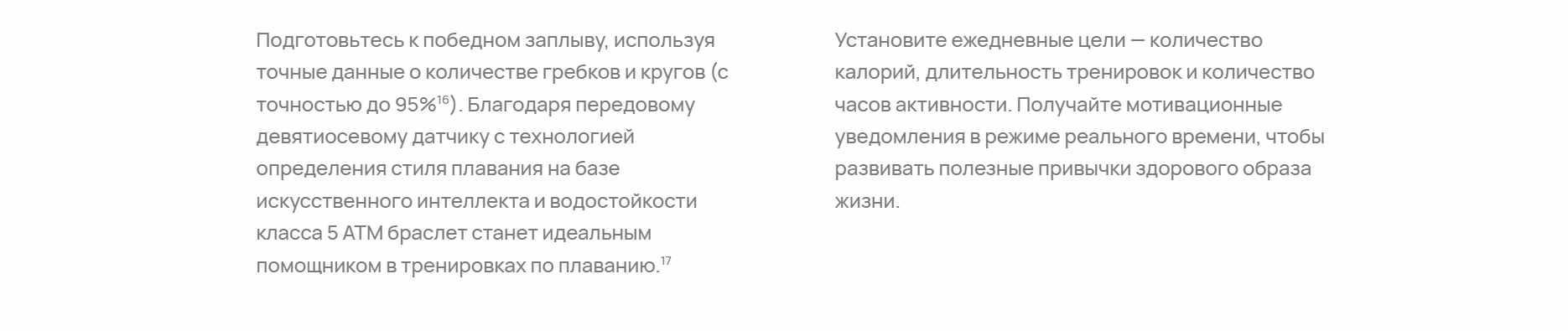 - Датчики: 9-осевой IMU-датчик (акселерометр, гироскоп, магнитометр)/Оптический датчик пульса/Датчик освещенности