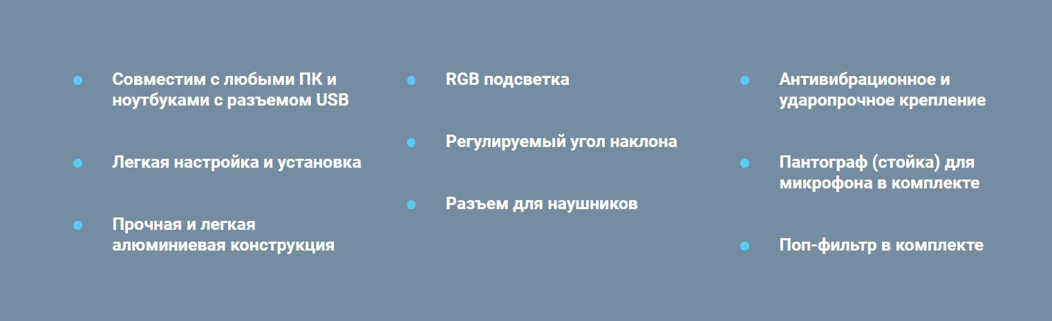 Встроенный поп-фильтр надежно защищает от резких свистящих и взрывных звуков, а антивибрационный подвес гасит любые случайные сотрясения и стуки, передавая в микрофон только чистый голос.