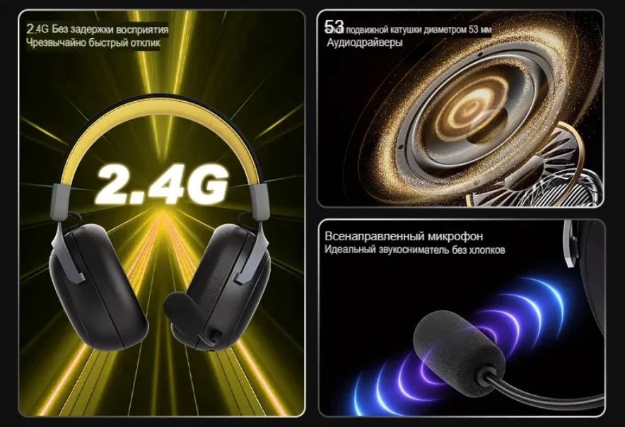 Характеристики Наушники с микрофоном беспроводные/проводные Ajazz AHM08 MAX черный