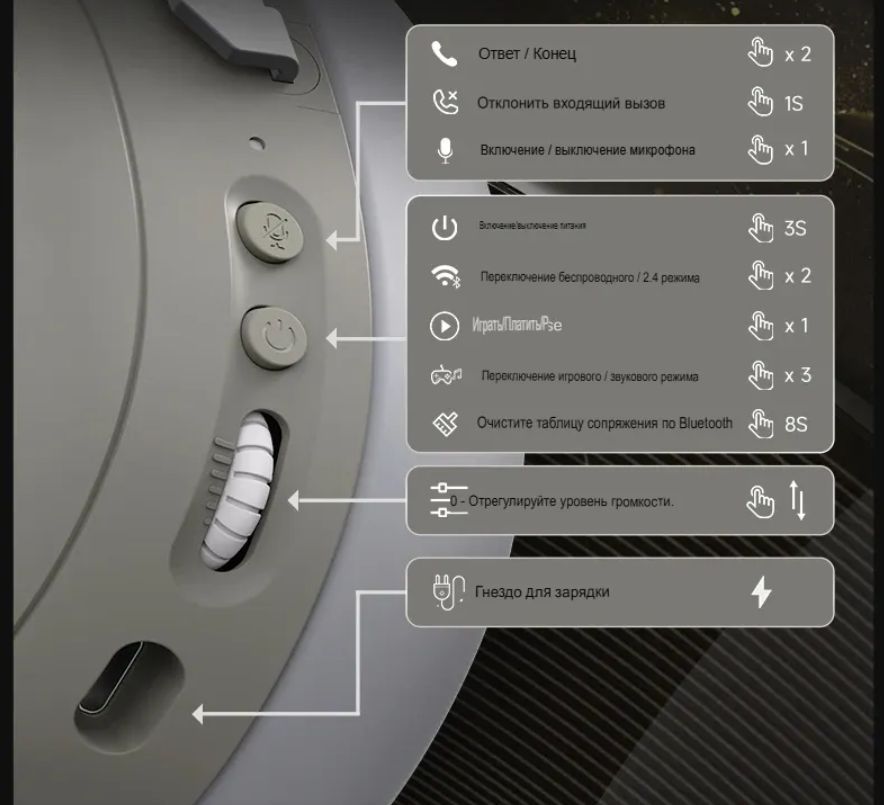 • Интерфейс подключения: Bluetooth, проводной, радиоканал