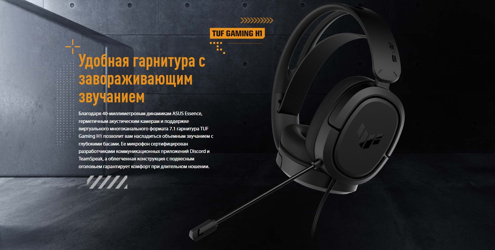 Наушники с микрофоном беспроводные/проводные ASUS TUF Gaming H1 WL черный