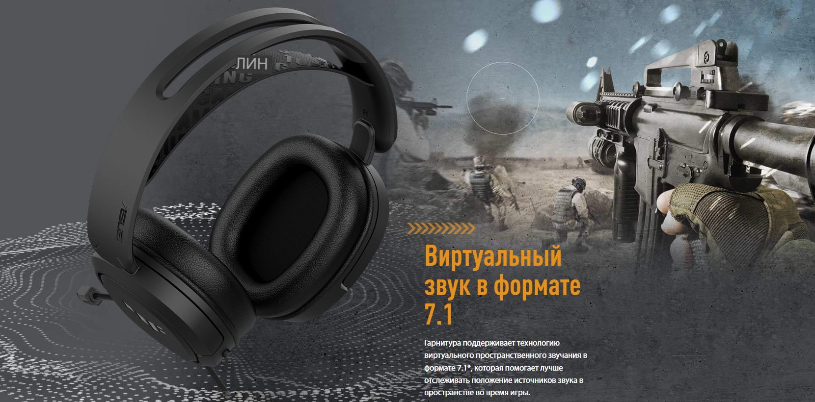 В модели ASUS TUF Gaming H1 WL предусмотрена поддержка виртуального пространственного звучания в формате 7.1, что позволит лучше отслеживать положение противников при прохождении игр.