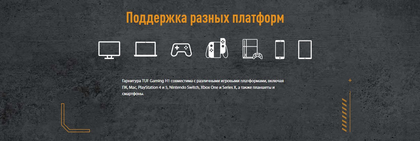 Характеристики Наушники с микрофоном беспроводные/проводные ASUS TUF Gaming H1 WL черный