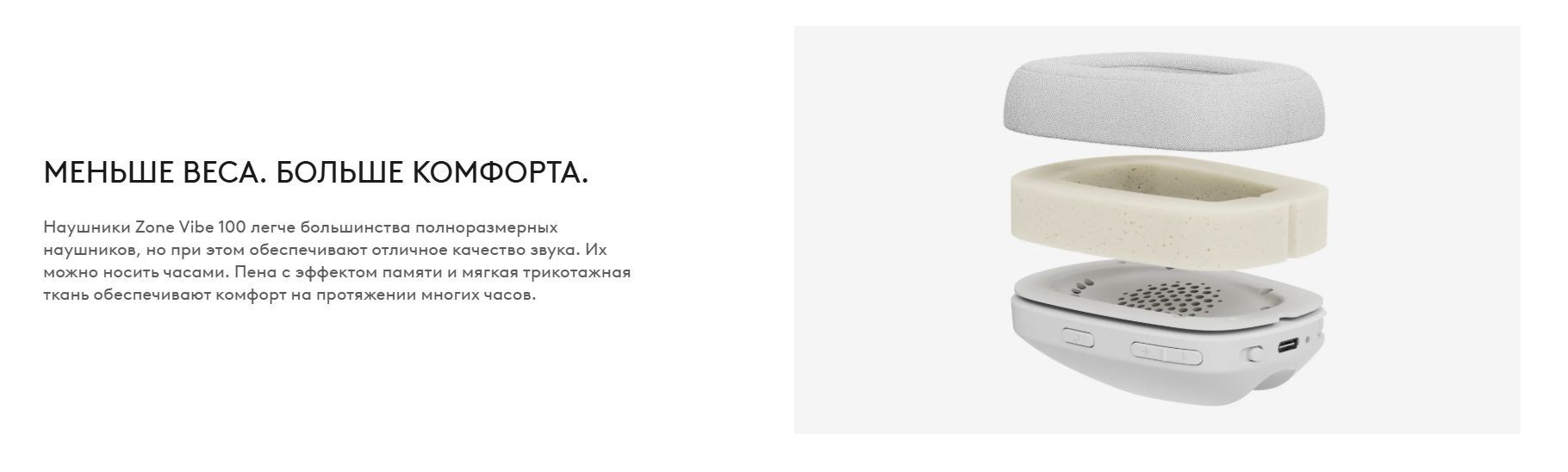 Наушники беспроводные Logitech Zone Vibe 100 оснащен микрофоном с функцией шумоподавления, который можно отключить, и технологией формирования луча.