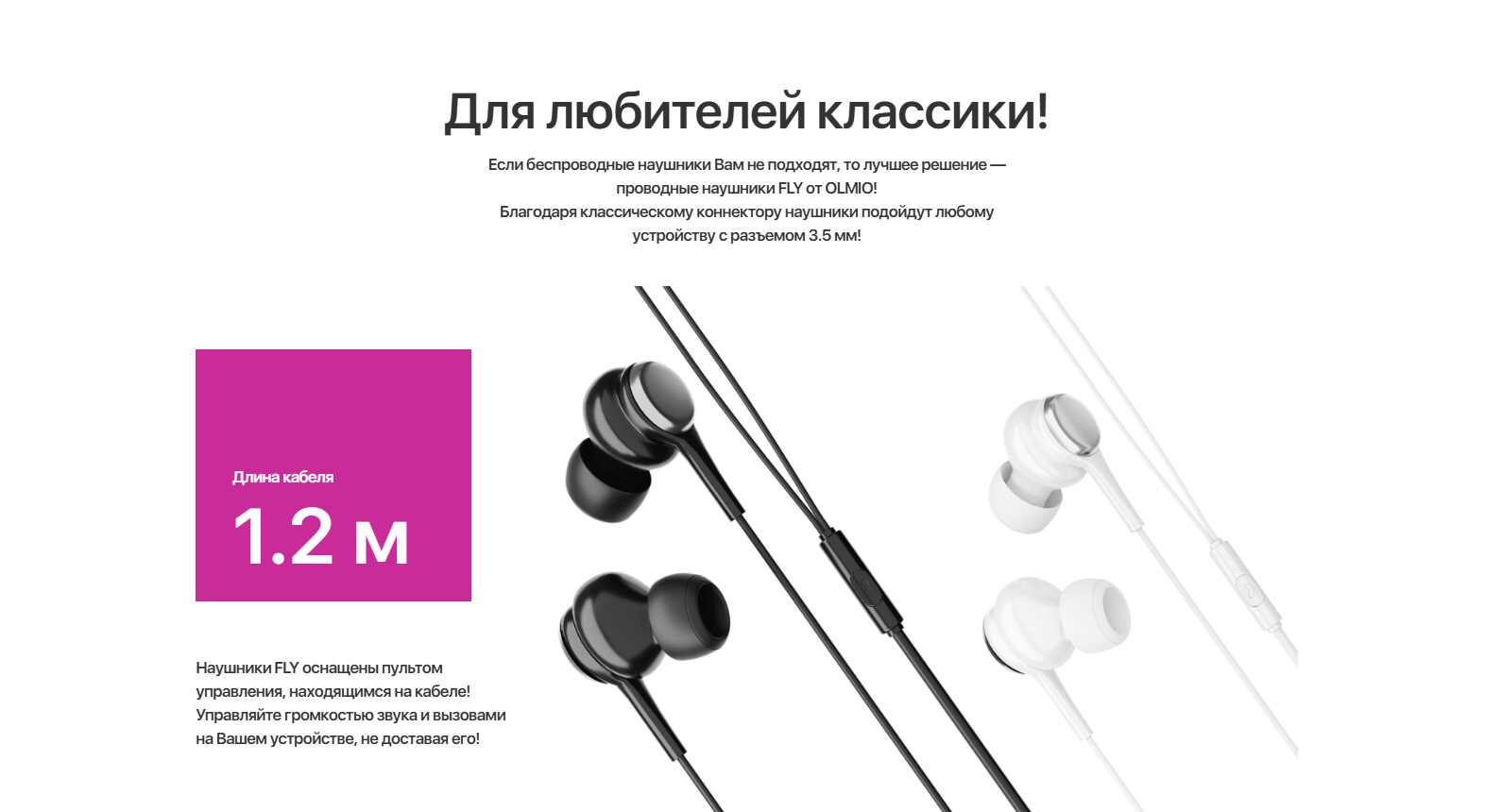 Наушники проводные с микрофоном OLMIO Fly черный