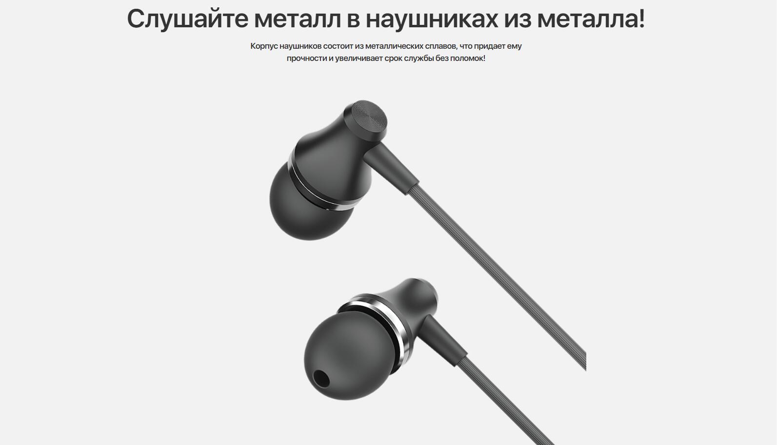 Наушники имеют металлический штекер, который обеспечивает долговечность и надёжность соединения.