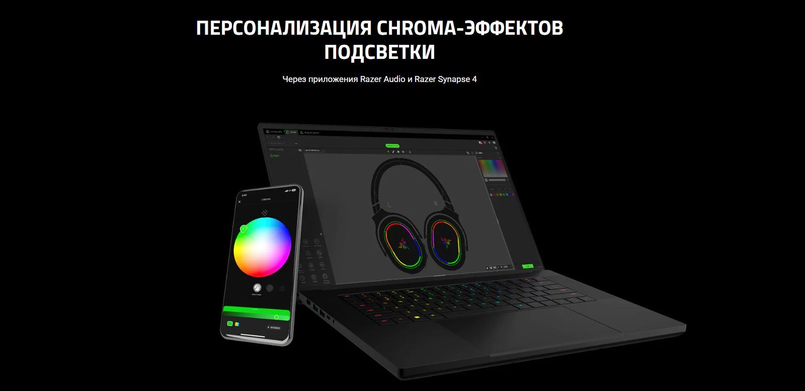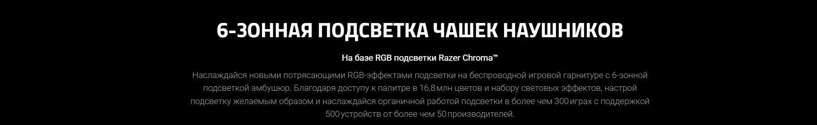 - RGB подсветка чашек наушников: Razer Chroma™ со световыми эффектами