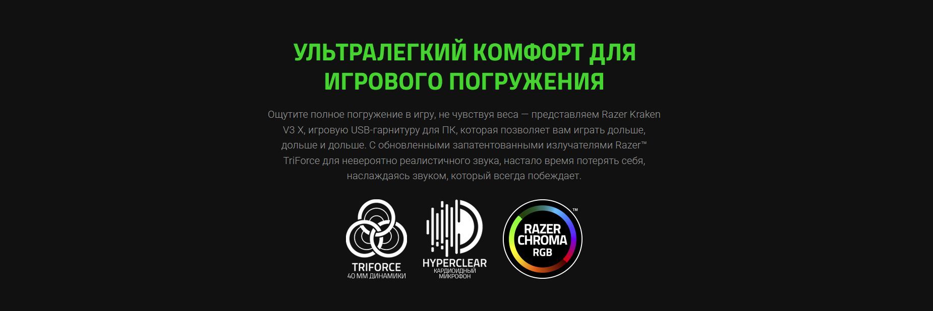 Razer Kraken V3 X представляет собой обновленную версию профессиональной геймерской гарнитуры полноразмерного типа с поворотным микрофоном и виртуальным объемным звуком 7.1.