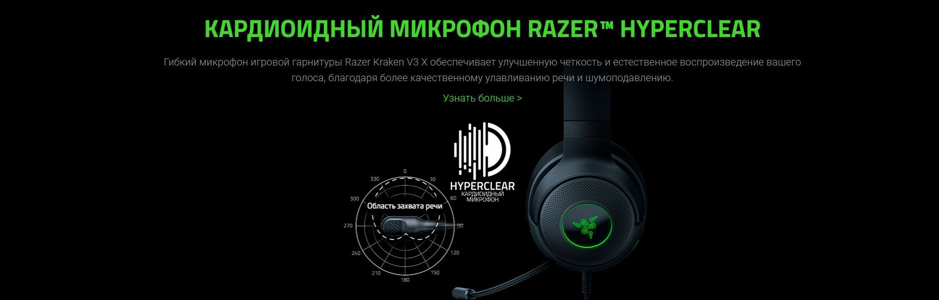 Характеристики Наушники с микрофоном проводные Razer Kraken V3 X черный