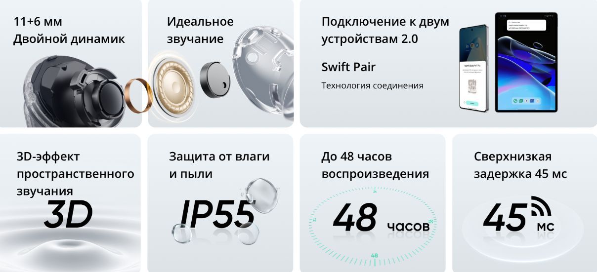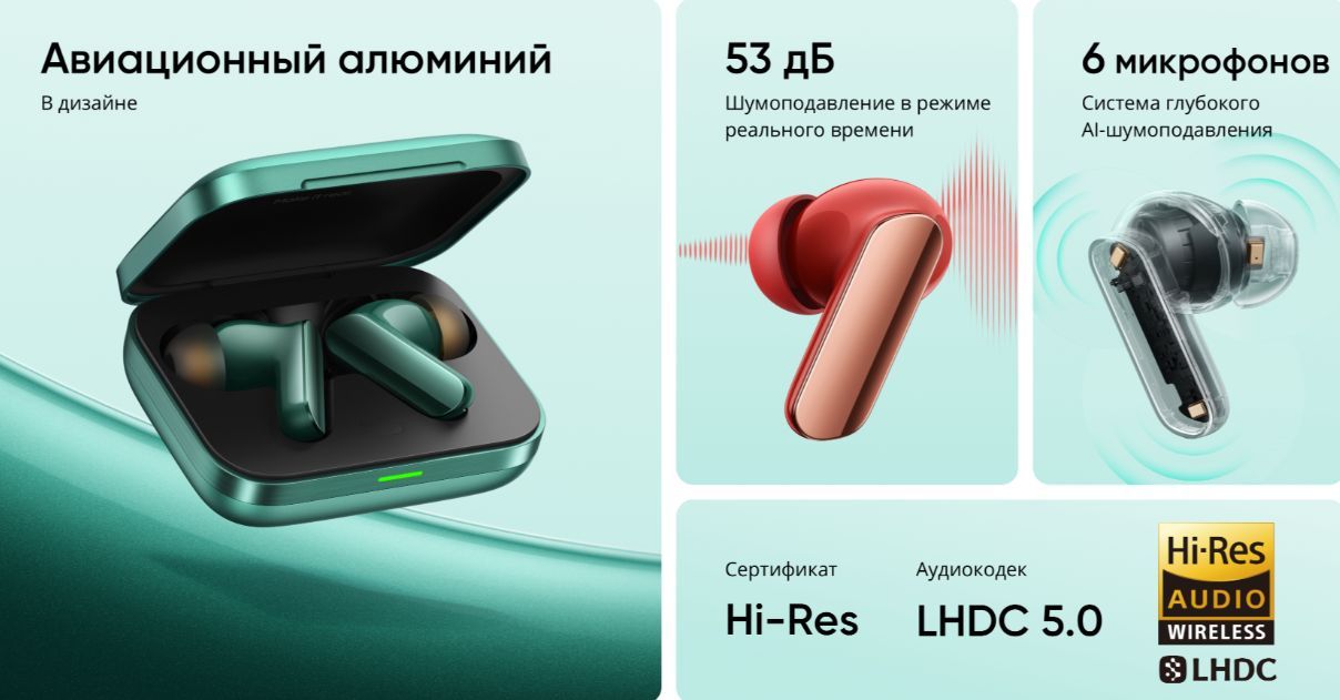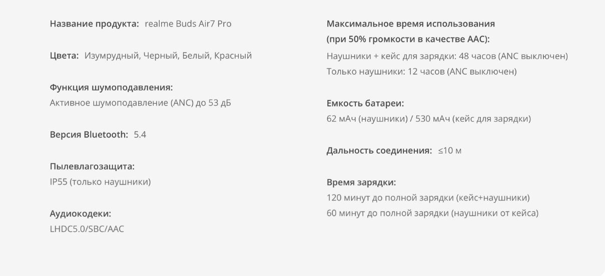Наушники Realme Buds Air 7 Pro полностью беспроводная модель с работой по Bluetooth и совместимостью с любыми устройствами.