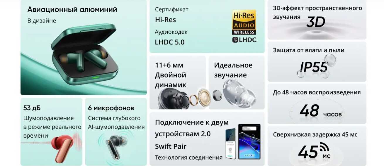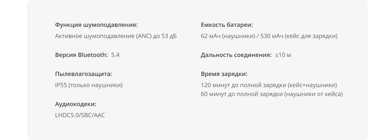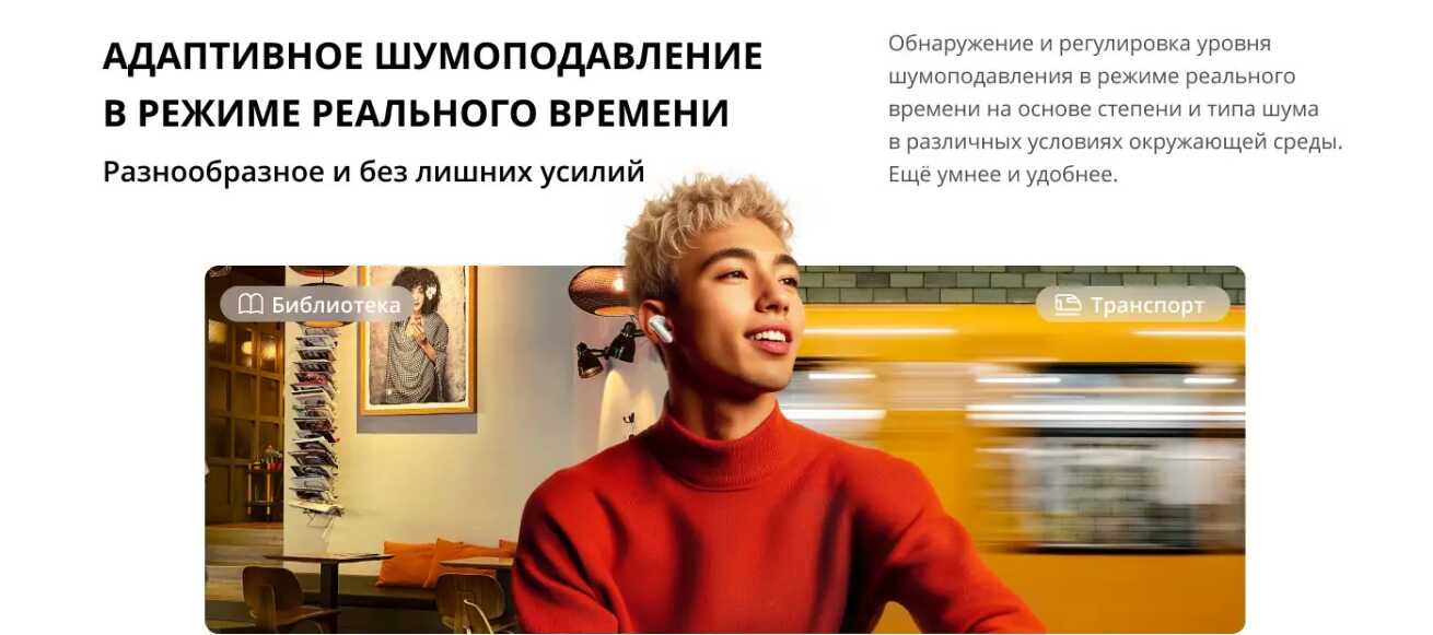Обновлённое шумоподавление до 53 дБ эффективно изолирует внешние шумы, будь то гул автомобилей или шум высокоскоростных железных дорог. Теперь вы сможете сосредоточиться на музыке или расслышать каждое слово в разговоре.