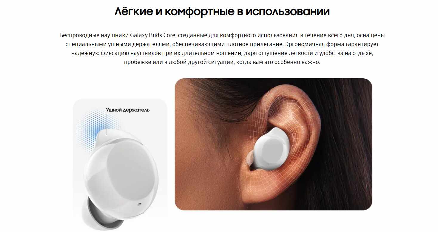 Наушники Samsung Buds Core полностью беспроводная модель с работой по Bluetooth.