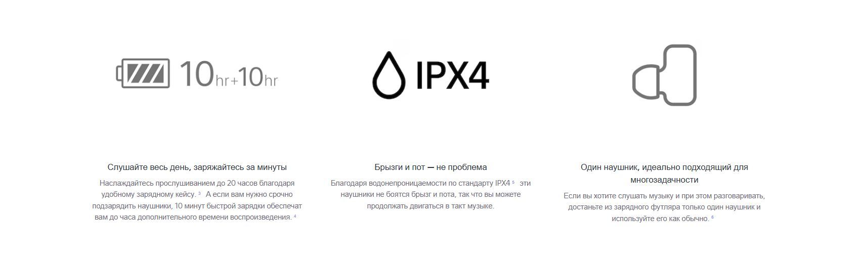 Благодаря его малому энергопотреблению и емким аккумуляторам в кейсе и самих наушниках время работы может достигать 20 ч.
