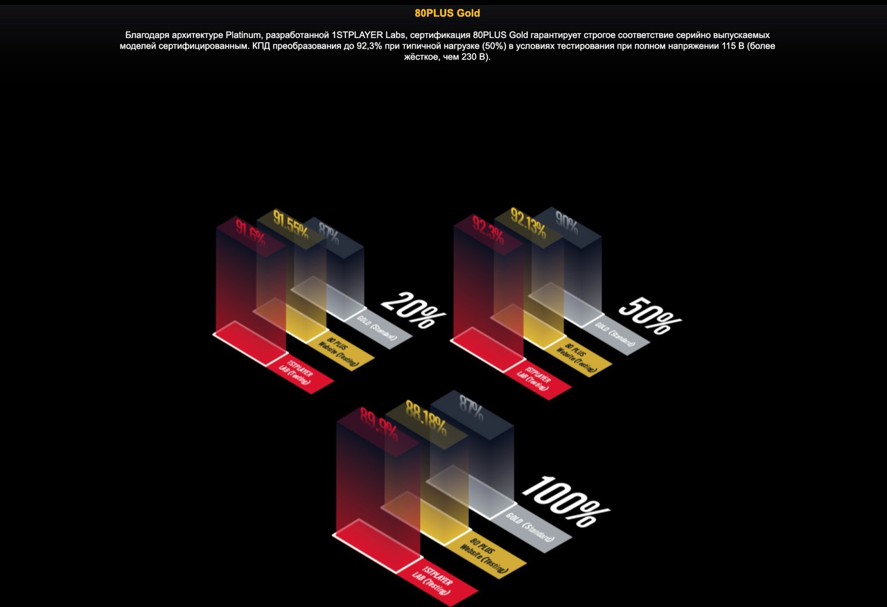 - При сертификации 80 PLUS GOLD, КПД должен быть не менее 87%.