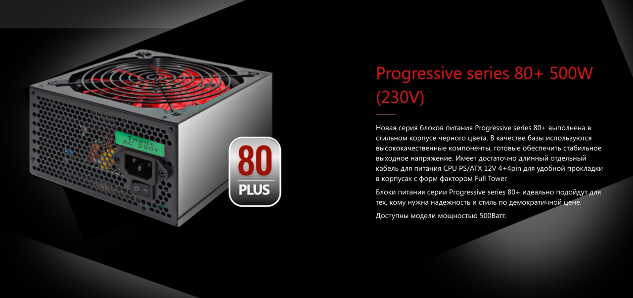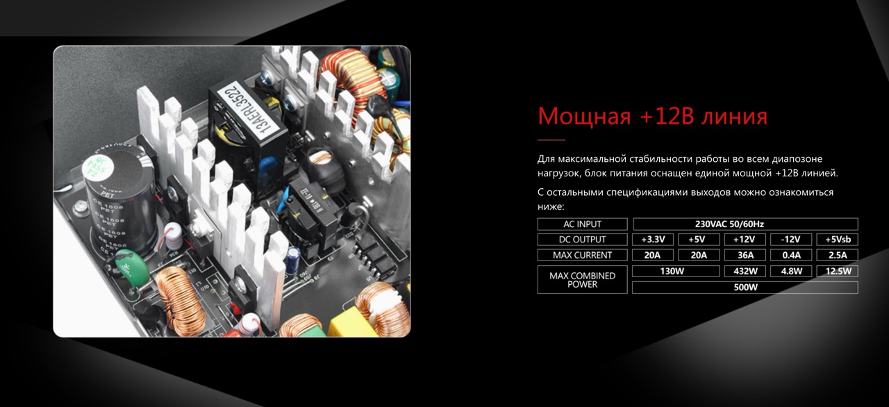 Блок питания 500W Ginzzu PC500 - это надежное и мощное устройство, которое обеспечит стабильное питание вашего компьютера. Стандарт ATX12V 2.3 и активный PFC гарантируют эффективную работу и защиту от перегрузок и короткого замыкания.
