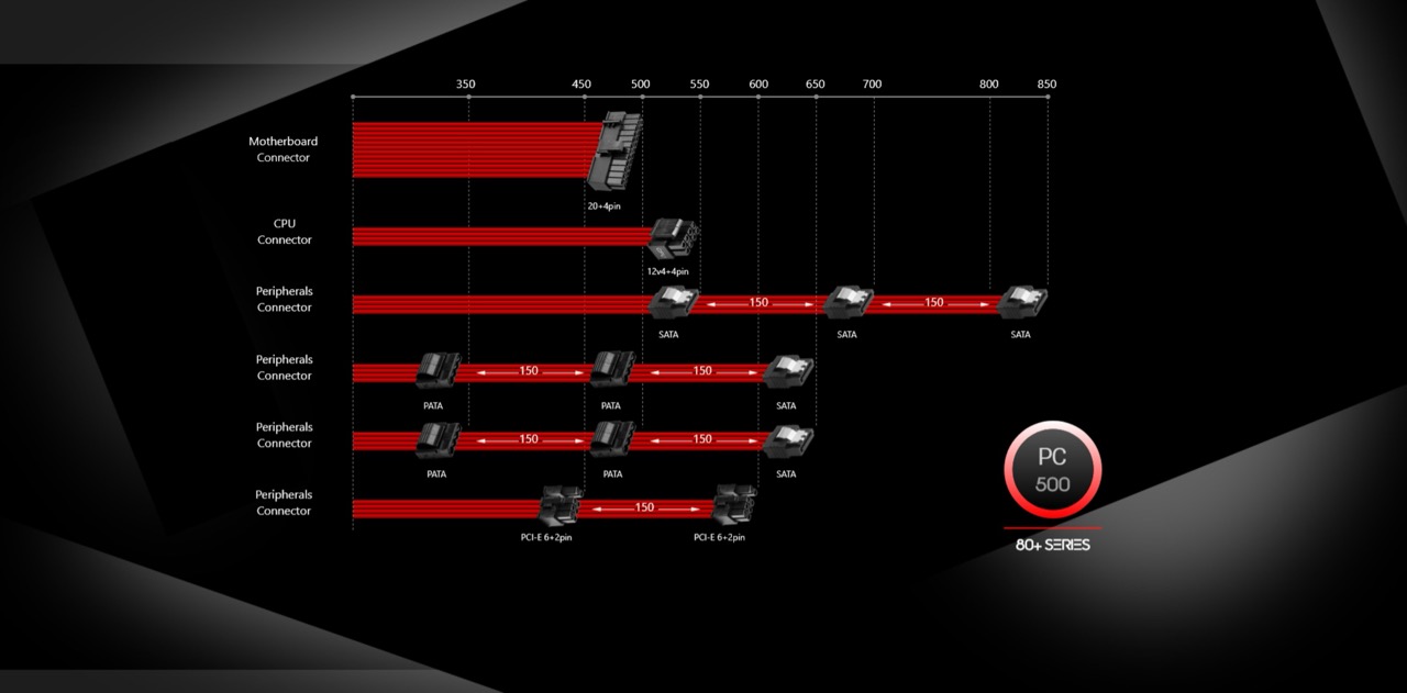 Длина кабеля питания материнской платы составляет 50 см, что обеспечивает удобство при установке и подключении блока питания. Этот компонент идеально подойдет для сборки игрового ПК или мощной рабочей станции, так как обеспечивает стабильное и надежное питание даже при высокой нагрузке.