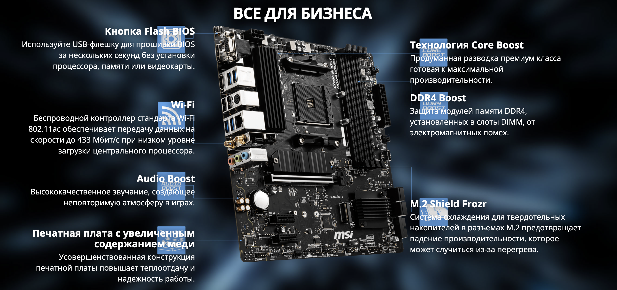 • Высокоскоростные интерфейсы: PCIe 4.0, Lightning Gen4 x4 M.2 с M.2 Shield Frozr