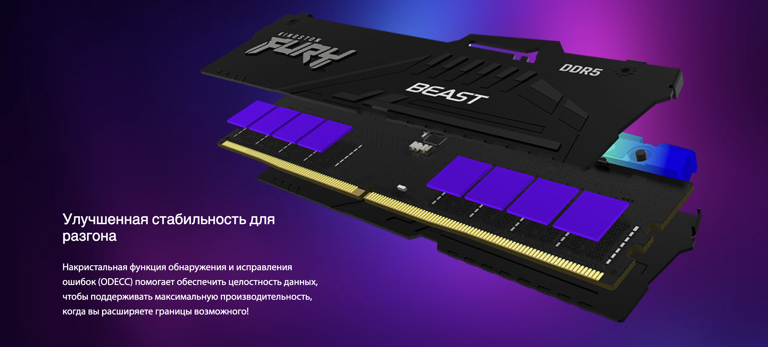 Характеристики Оперативная память Kingston Fury Beast DDR5 32Gb 6000MHz DIMM RGB черный (KF560C36BBE2A-32)