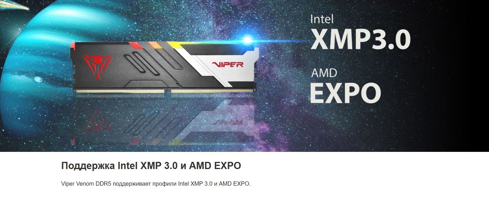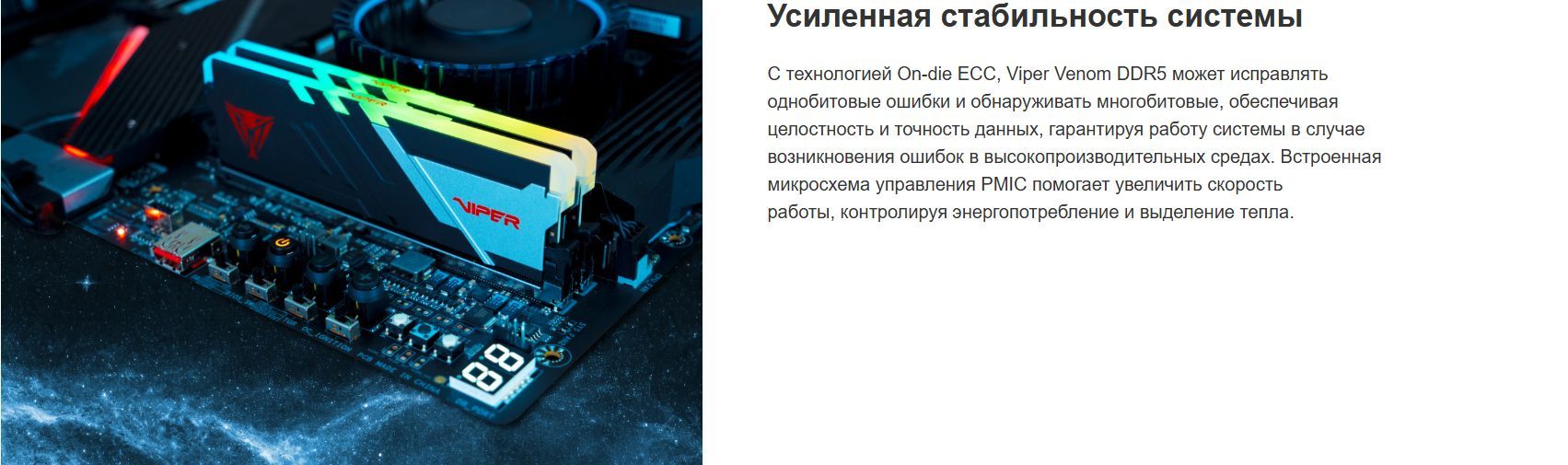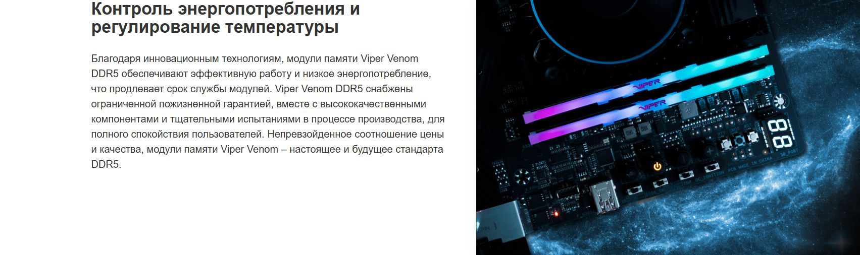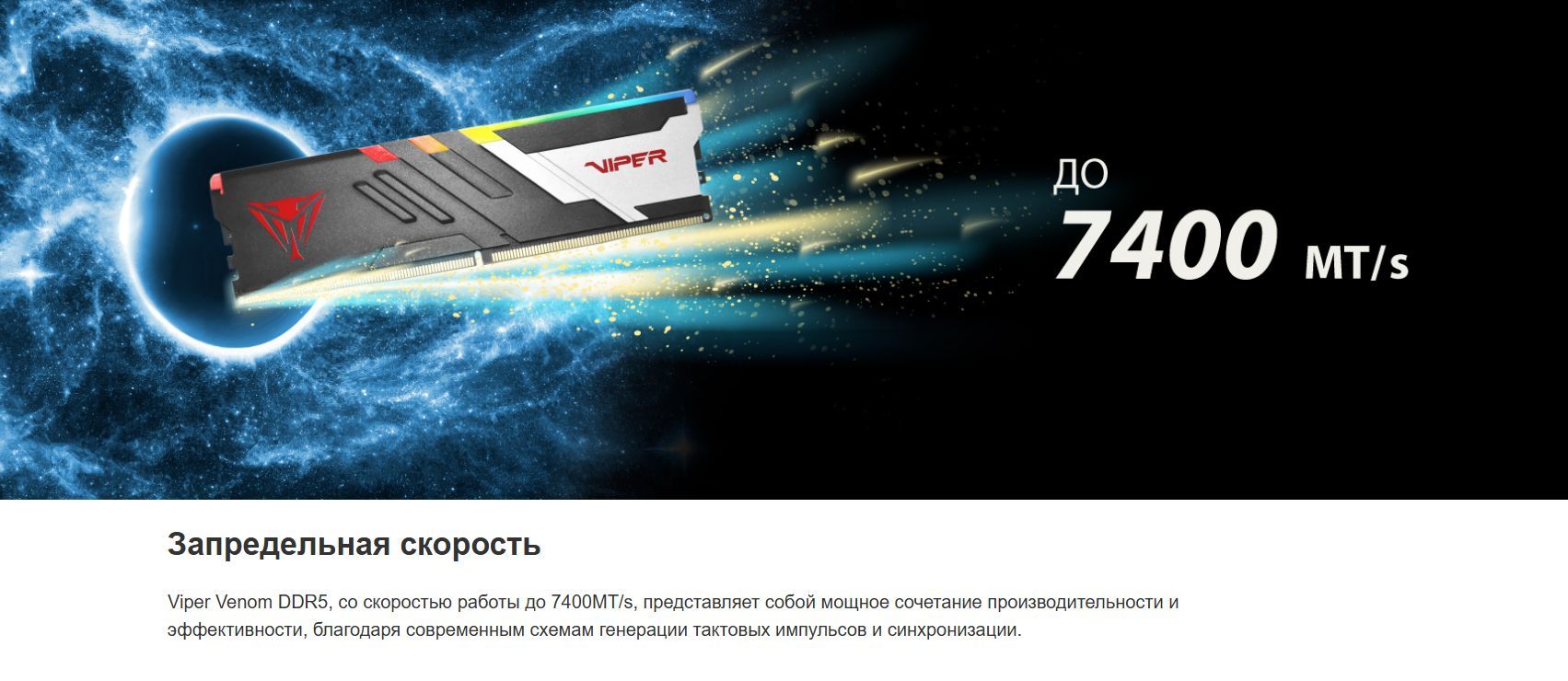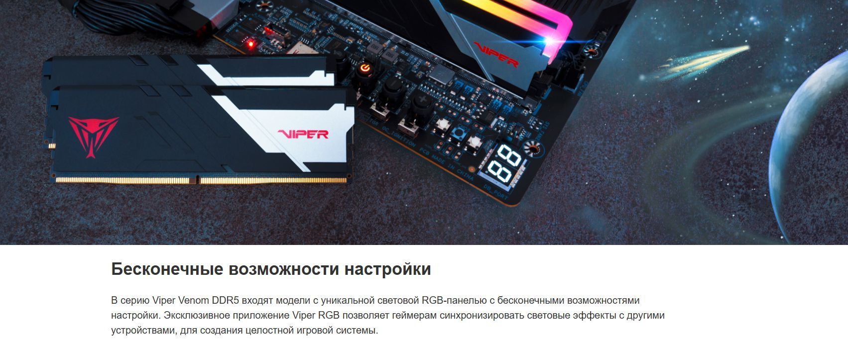 64-гигабайтная оперативная память Patriot Viper Venom комплект из пары модулей DDR5 по 32 Гб.