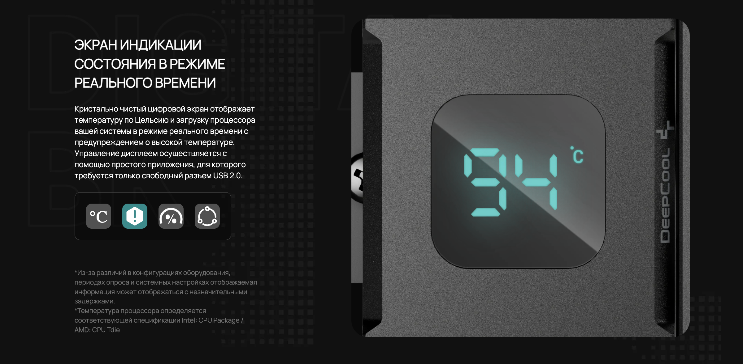 Наступила эра цифровых кулеров и DeepCool желает быть во главе популяризации этого. Все, что вам нравилось в AG400, но теперь и с изящным низкопрофильным дисплеем индикации состояния.