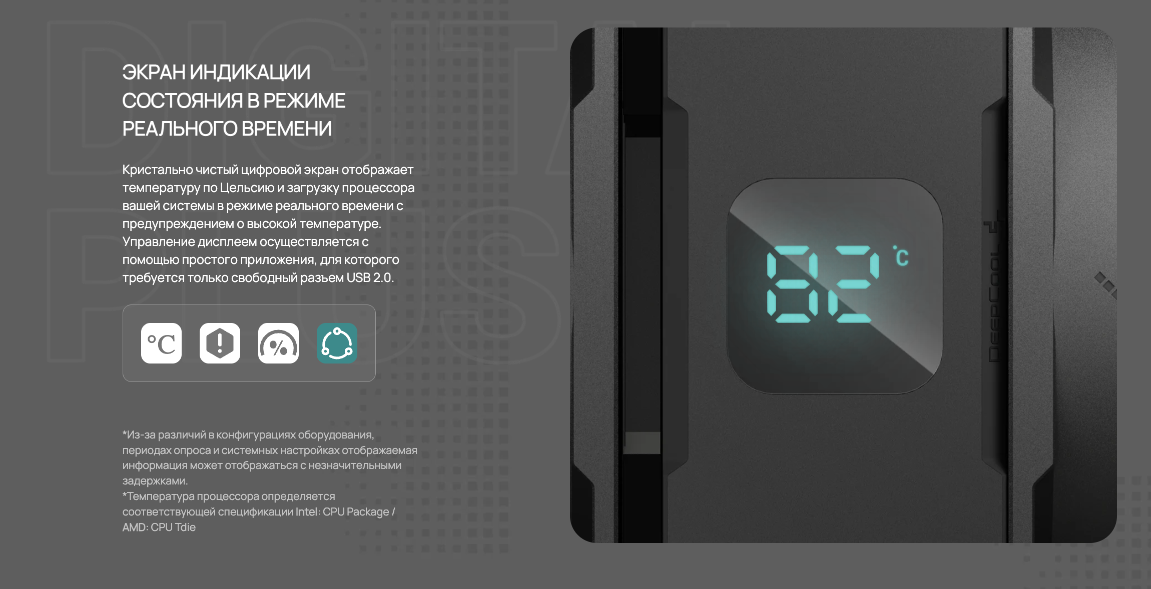 Наступила эра цифровых кулеров и DeepCool желает быть во главе популяризации этого. Все, что вам нравилось в AG400 PLUS, но теперь и с изящным низкопрофильным дисплеем индикации состояния.