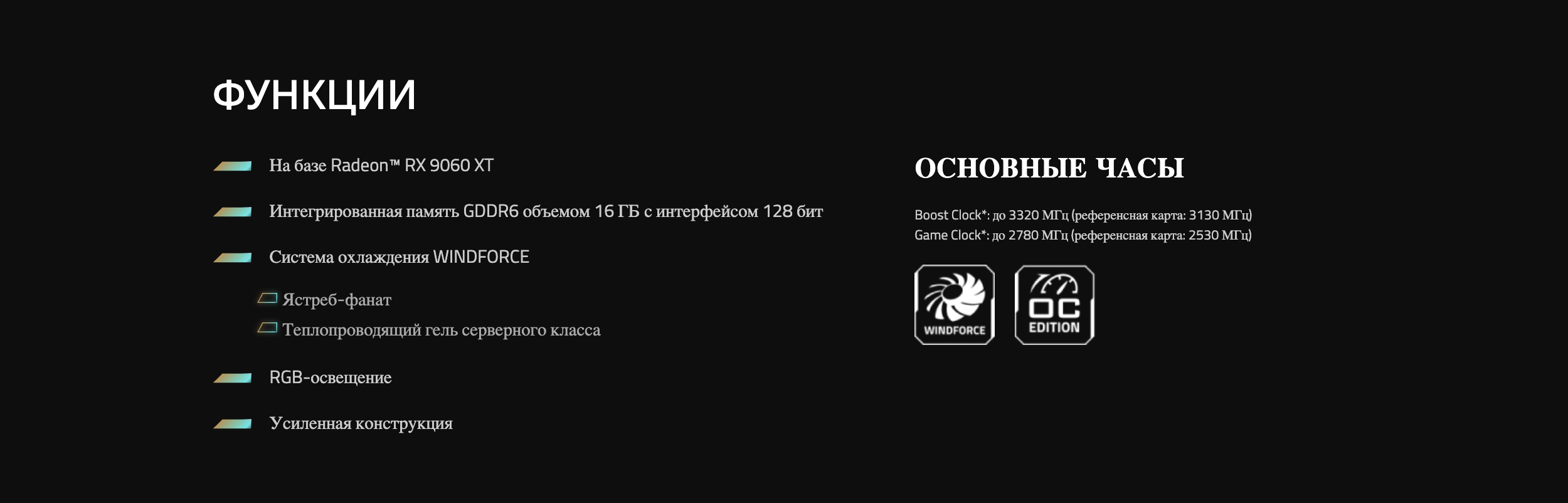 Погрузитесь в мир высокопроизводительного геймплея и реалистичной графики с видеокартой AMD Radeon RX 9060 XT Gigabyte GAMING OC 16Gb — идеальным решением для требовательных игроков и творческих профессионалов. Основанная на передовой архитектуре AMD RDNA 4, эта модель предлагает потрясающую производительность, энергоэффективность и инновационные технологии, которые выведут ваш игровой опыт на новый уровень.