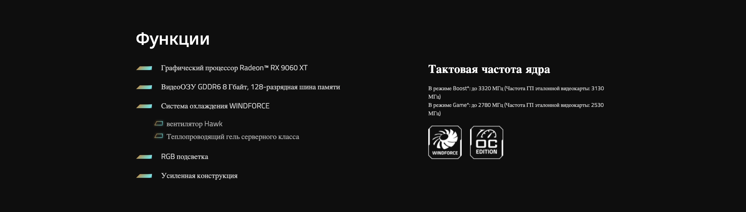 Характеристики Видеокарта Gigabyte AMD Radeon RX 9060XT GV-R9060XTGAMING OC-8GD 8Gb GDDR6 (GV-R9060XTGAMING OC-8GD 1.0)