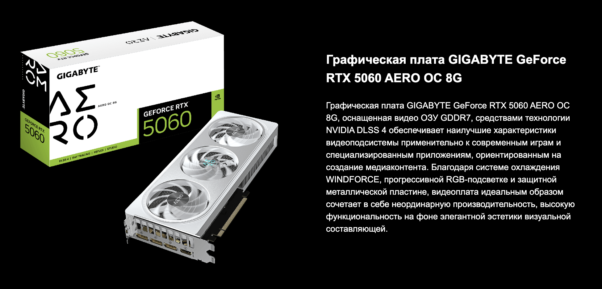 Видеокарта Gigabyte PCI-E 5.0 GV-N5060AERO OC-8GD 1.0 NVIDIA GeForce RTX 5060 8Gb GDDR7