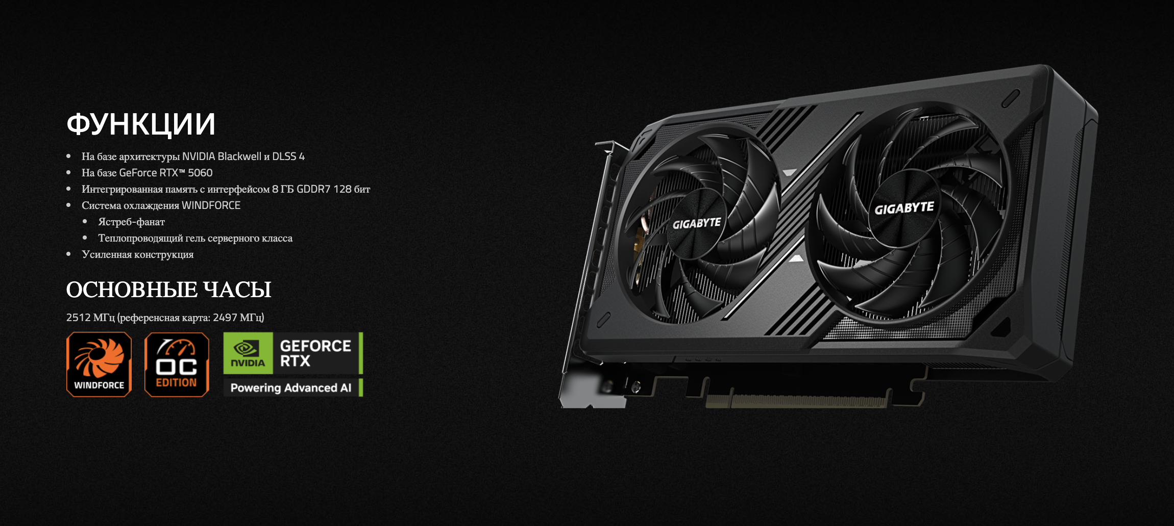 Видеокарта Gigabyte NVIDIA GeForce RTX 5060 GV-N5060WF2MAX OC-8GD 1.0 Windforce Max 8Gb GDDR7