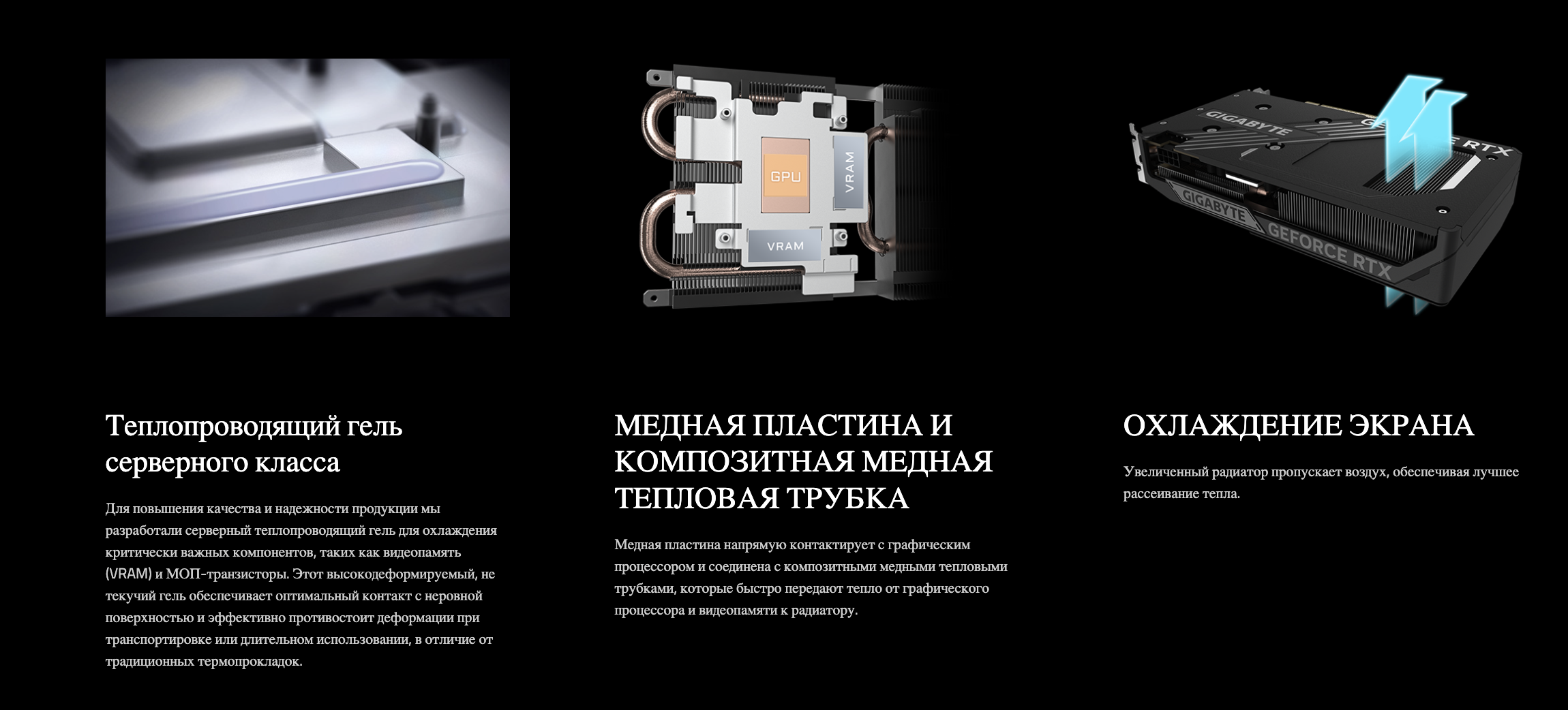 Система охлаждения графического процессора и видеопамяти. Чем выше производительность графического процессора и памяти, тем больше тепла они выделяют при работе. Система охлаждения позволяет надежно охлаждать видеокарту и отводить тепло из компьютерного корпуса.