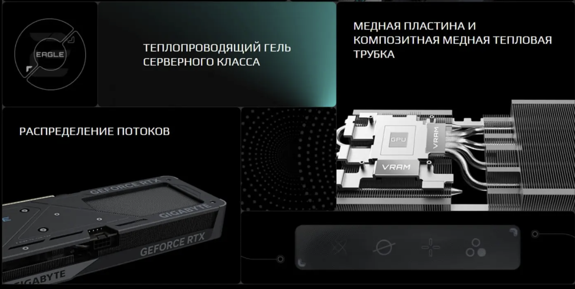 Система охлаждения графического процессора и видеопамяти. Чем выше производительность графического процессора и памяти, тем больше тепла они выделяют при работе. Система охлаждения позволяет надежно охлаждать видеокарту и отводить тепло из компьютерного корпуса.