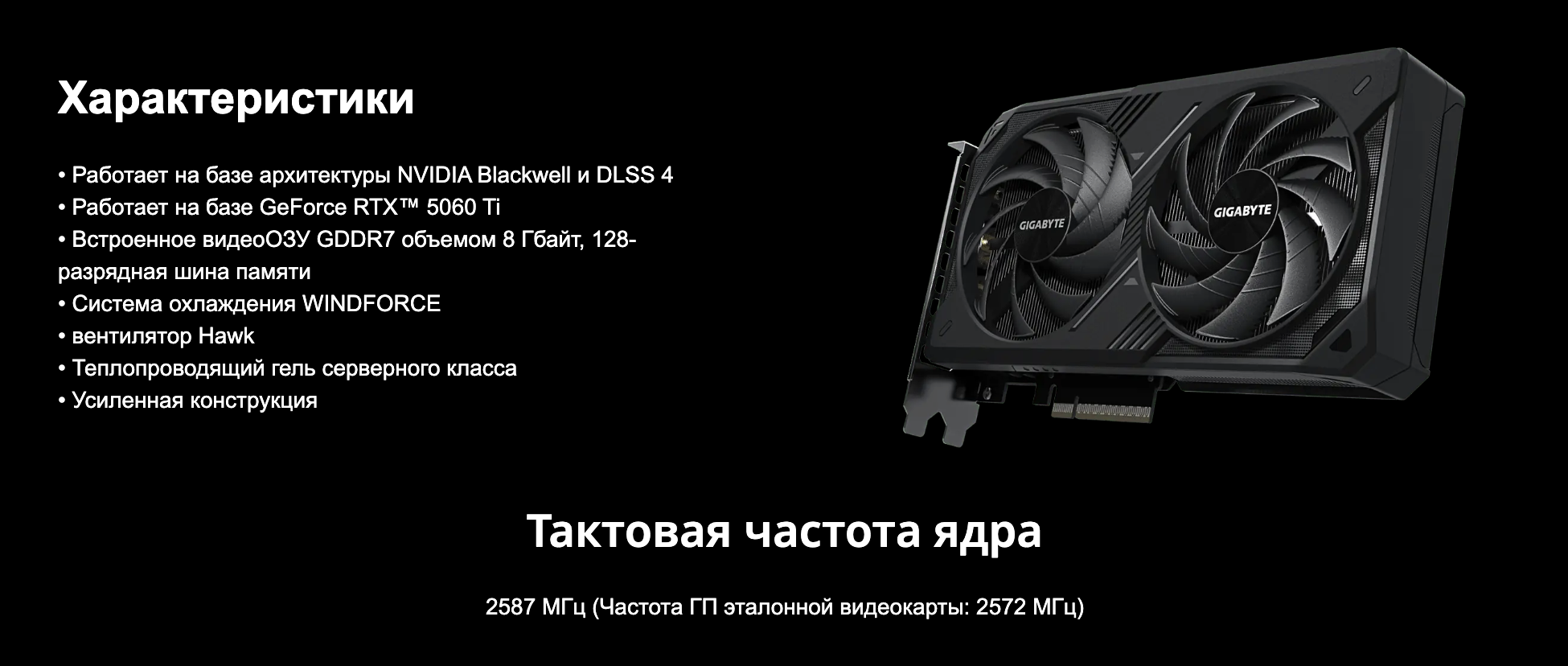 БрендGigabyte Частота графического процессора2572 МГц Объем видеопамяти8 GB Тип видеопамятиGDDR7