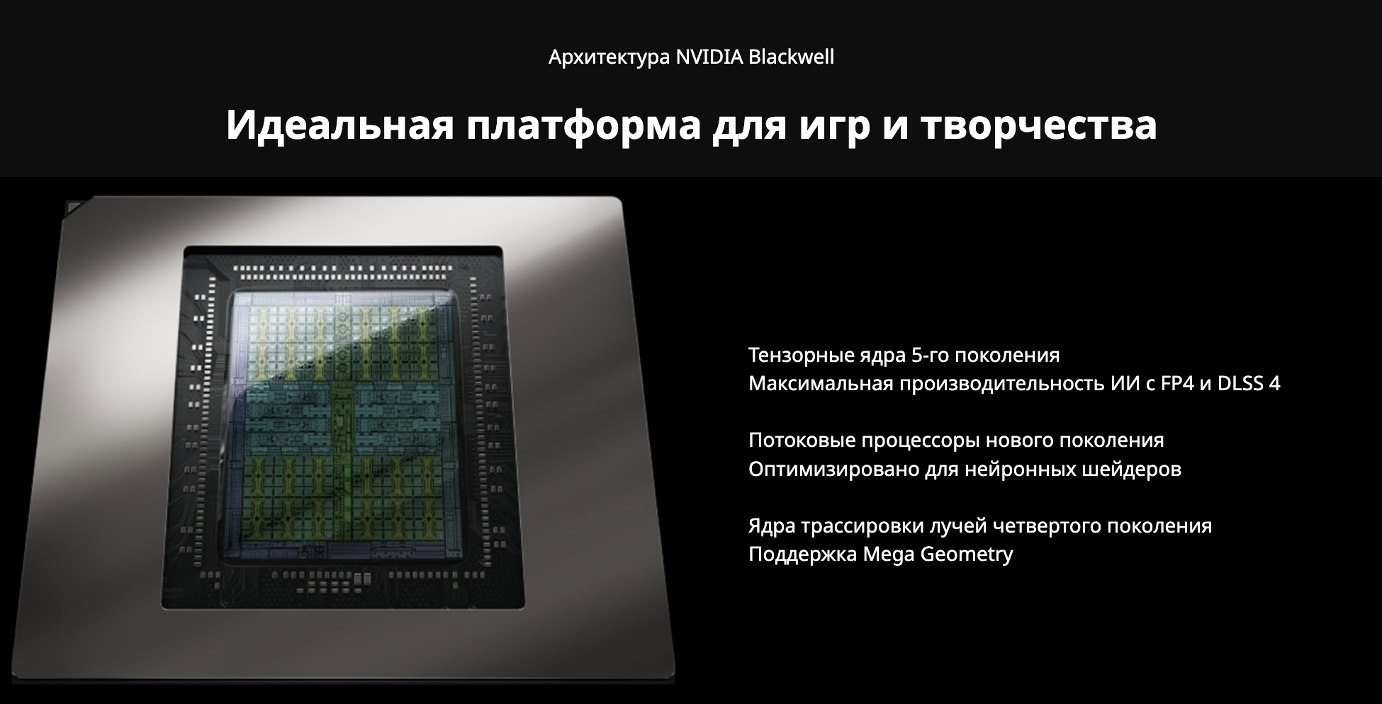 • Работает на базе архитектуры NVIDIA Blackwell и DLSS 4