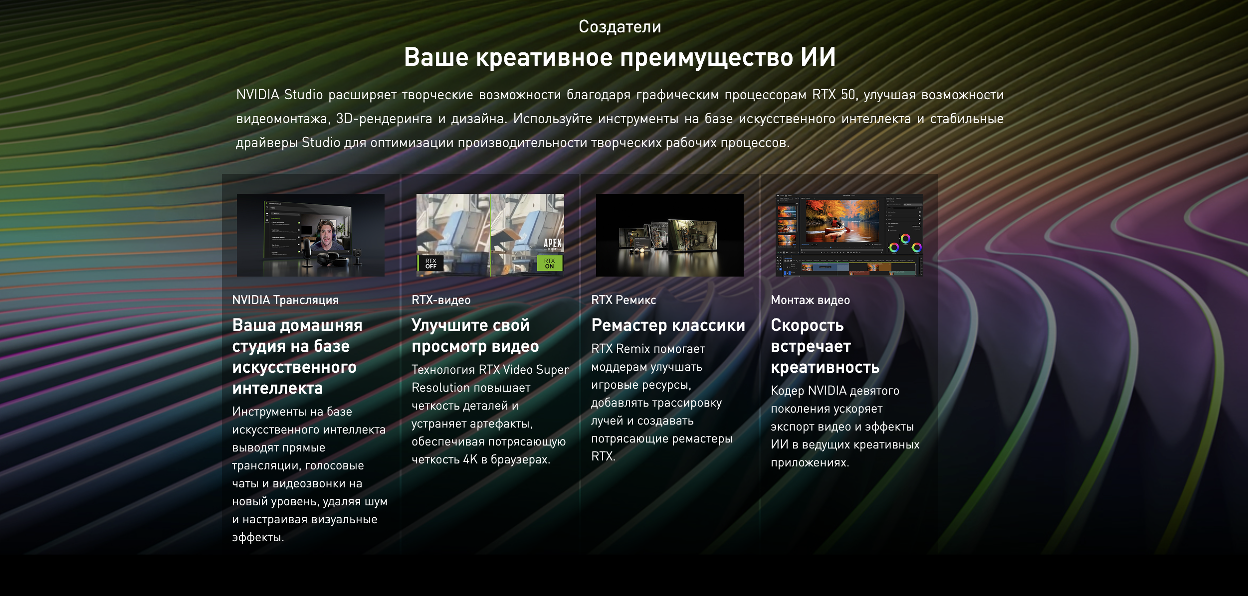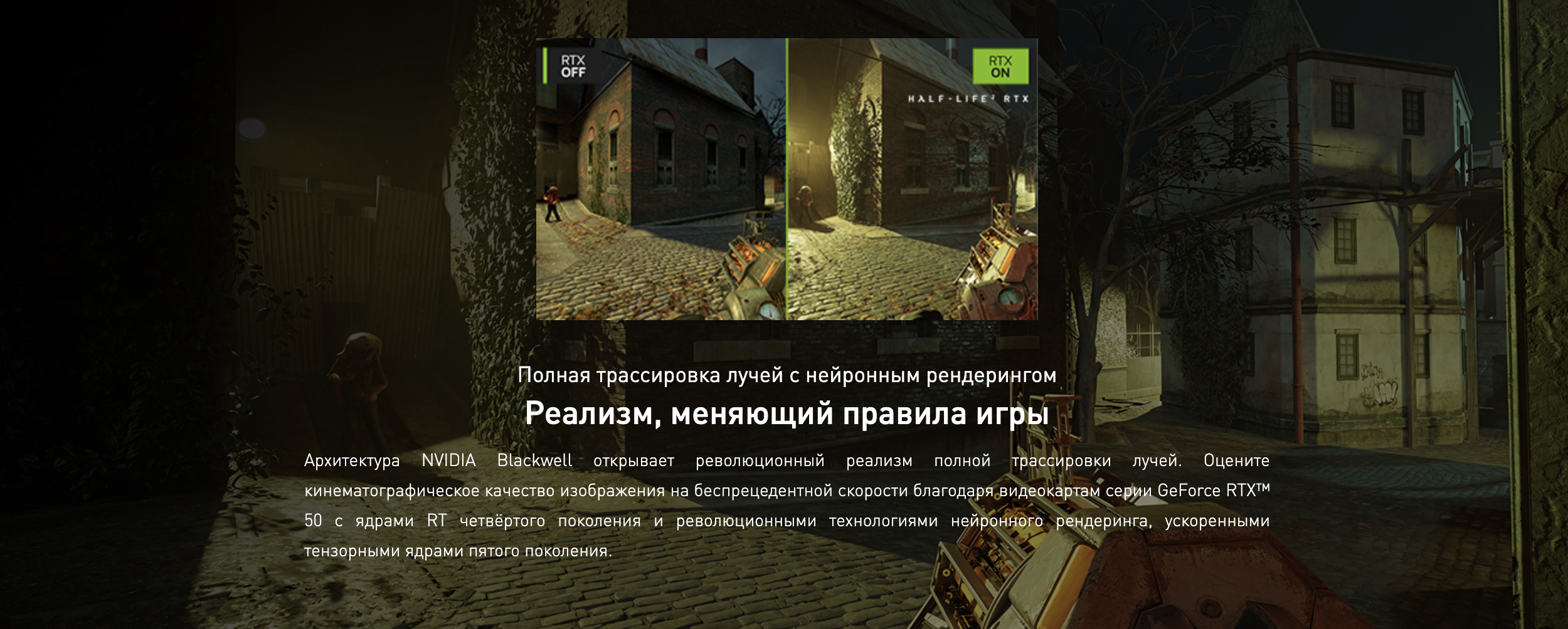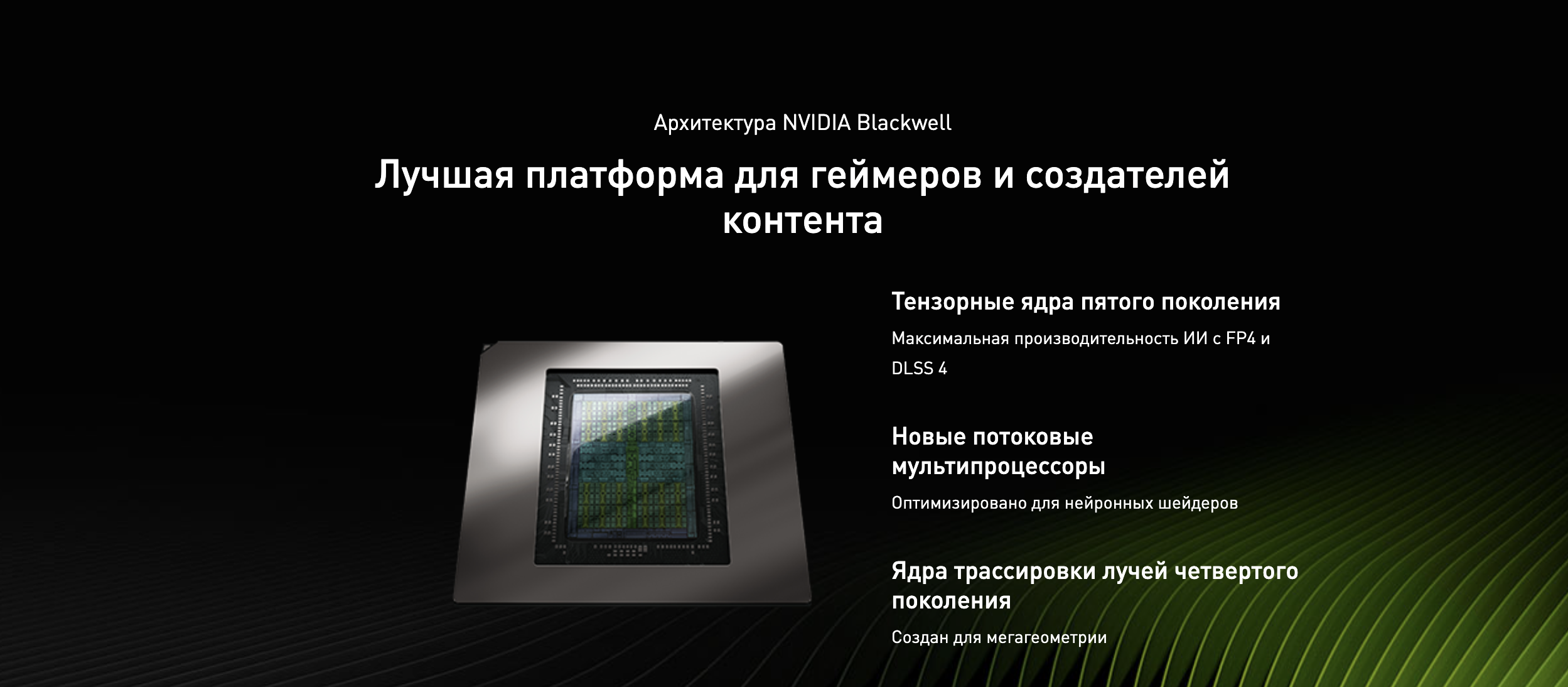 Графические процессоры GeForce RTX™ серии 50 на базе NVIDIA Blackwell предоставляют геймерам и создателям контента революционные возможности искусственного интеллекта.