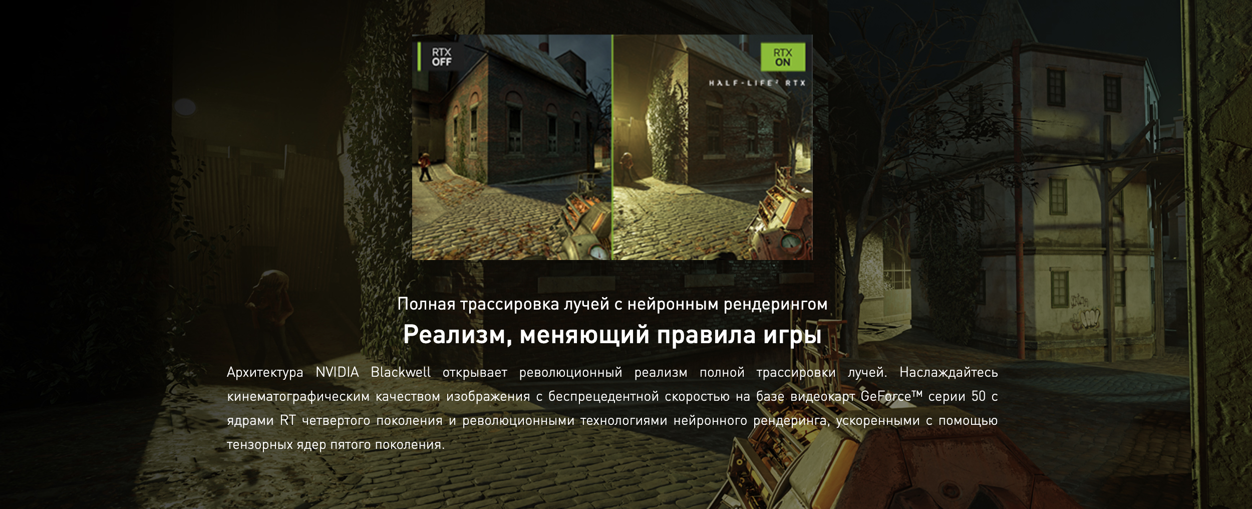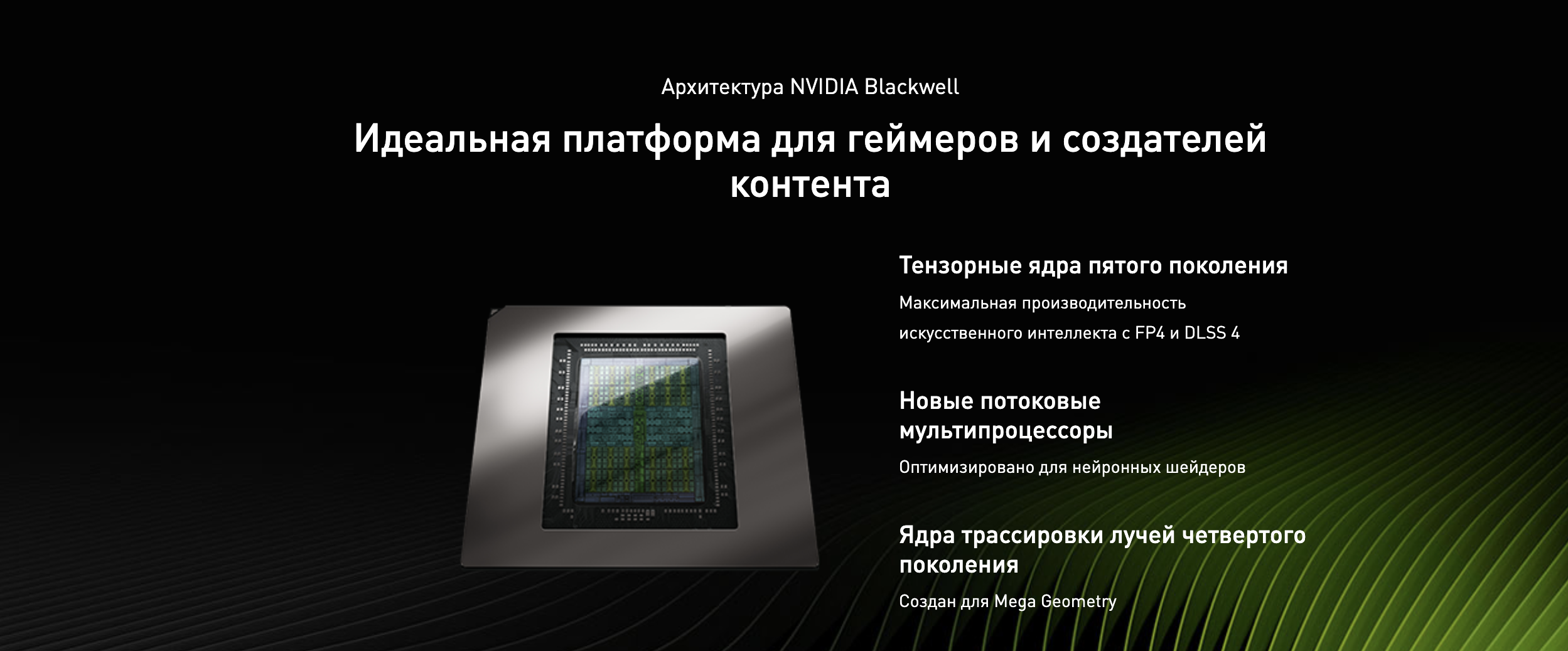 Графические процессоры серии GeForce RTX™ 50 на базе NVIDIA Blackwell открывают геймерам и создателям контента революционные возможности искусственного интеллекта.