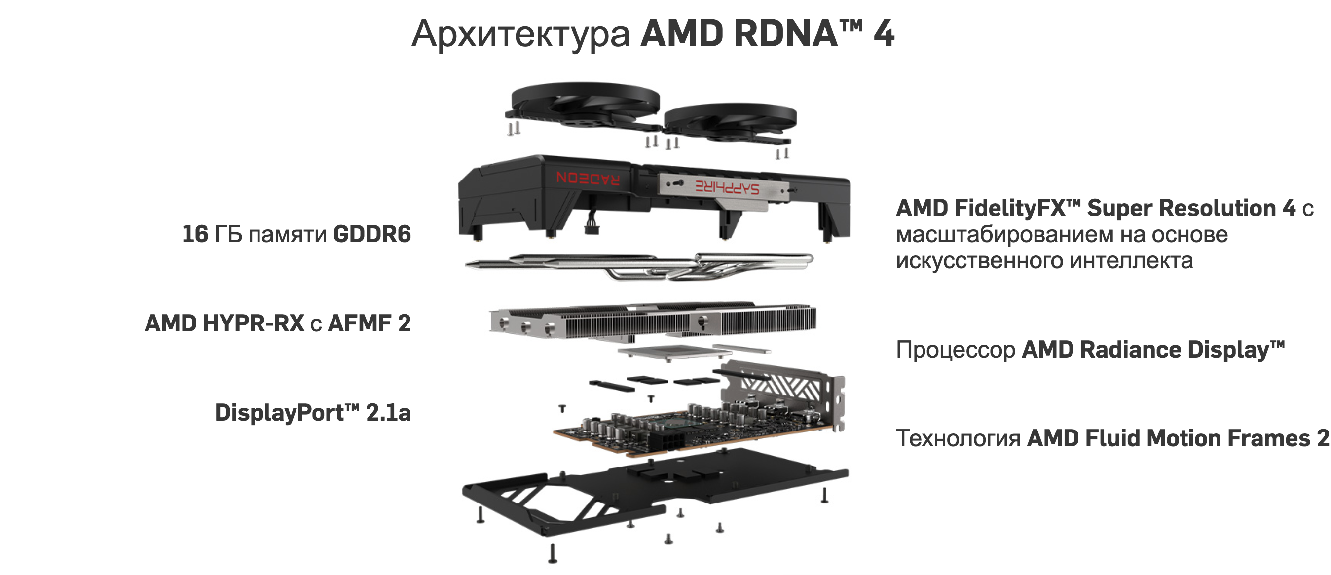 Видеокарта Sapphire AMD Radeon RX 9060 XT Pulse Gaming OC 16Gb GDDR6 (11350-03-20G)