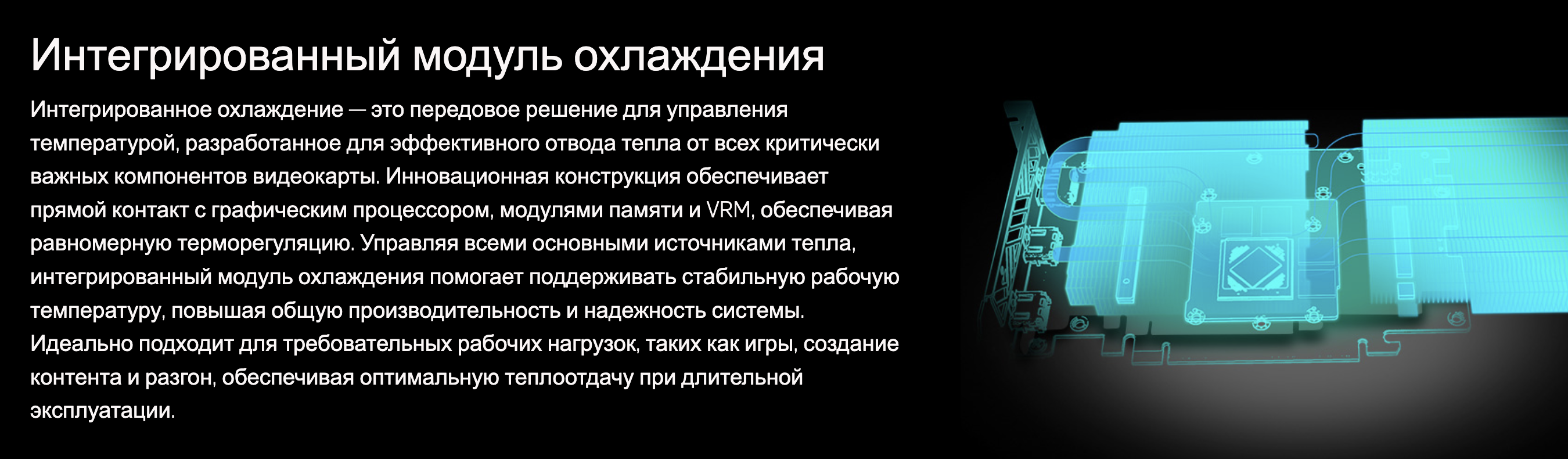 Система охлаждения графического процессора и видеопамяти. Чем выше производительность графического процессора и памяти, тем больше тепла они выделяют при работе. Система охлаждения позволяет надежно охлаждать видеокарту и отводить тепло из компьютерного корпуса.